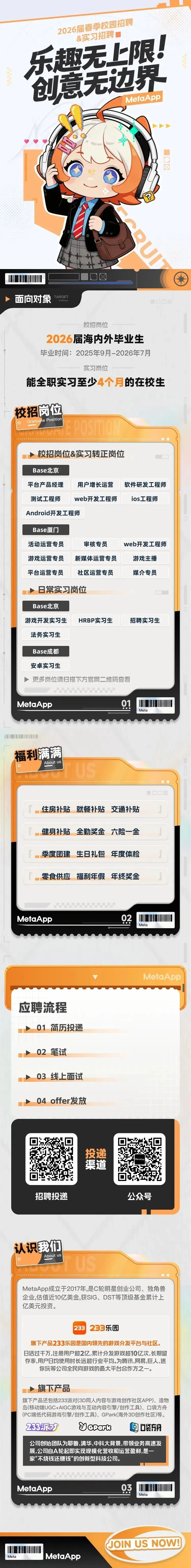 【校招公告】MetaApp2026届春季校园招聘&实习招聘