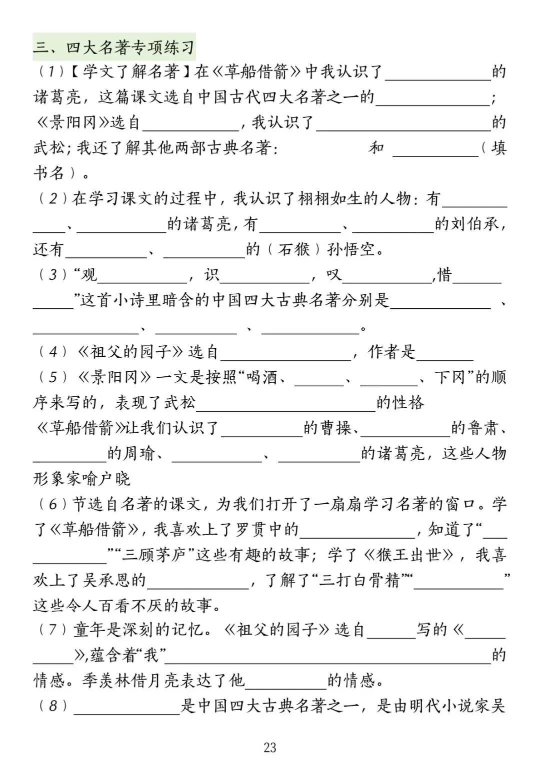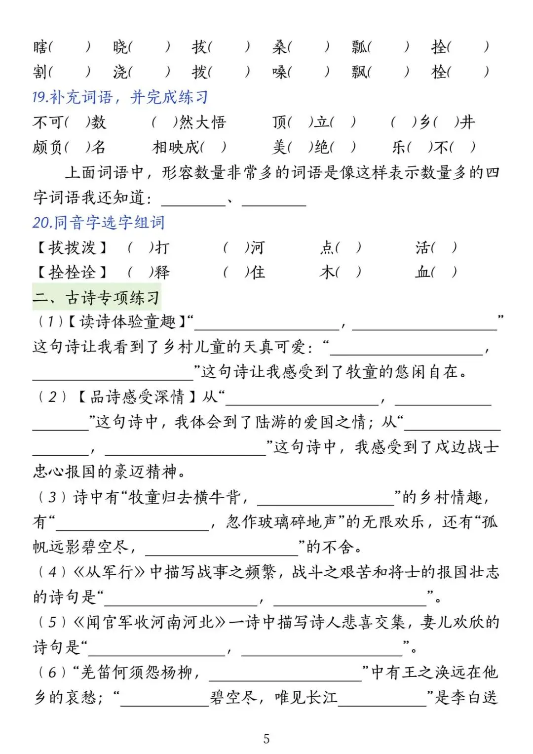 五年级下册语文《期中复习小测》,含答案,电子版可打印。包括词语专项练习、古诗专项练习、四大名著专项练习、歇后语专项练习、名人事迹、文化常识等题型专项练习,需要的家长打印出来让孩子练习,查漏补缺,巩固提升。