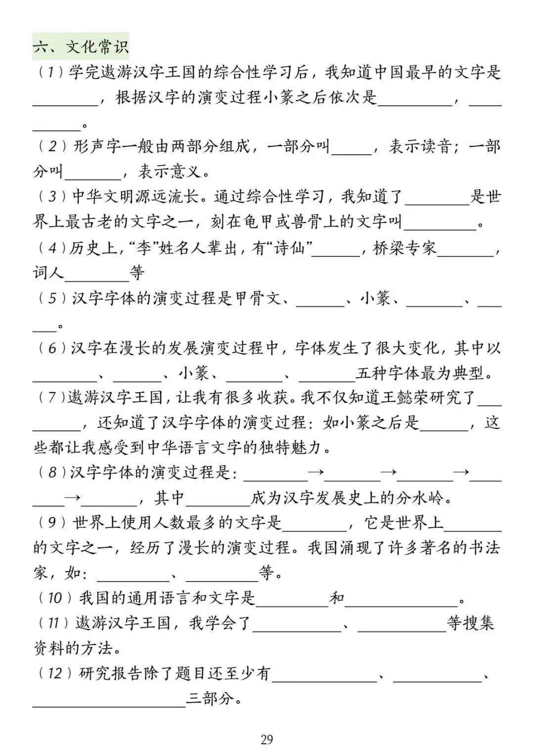 五年级下册语文《期中复习小测》,含答案,电子版可打印