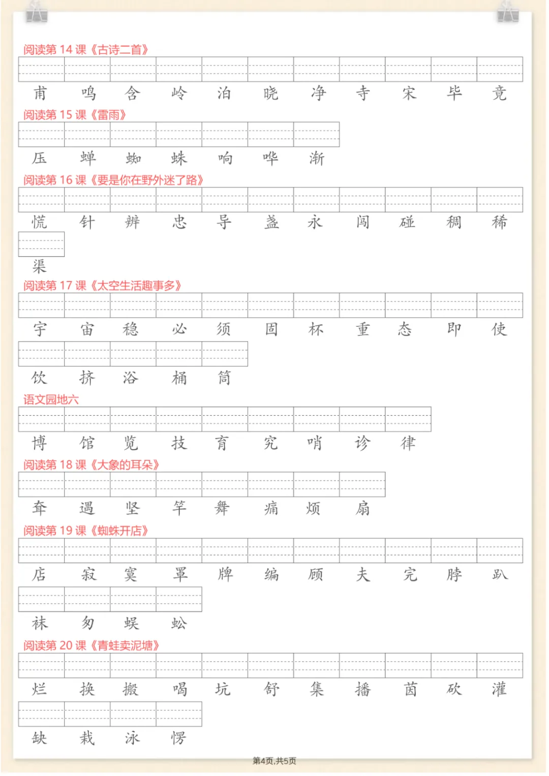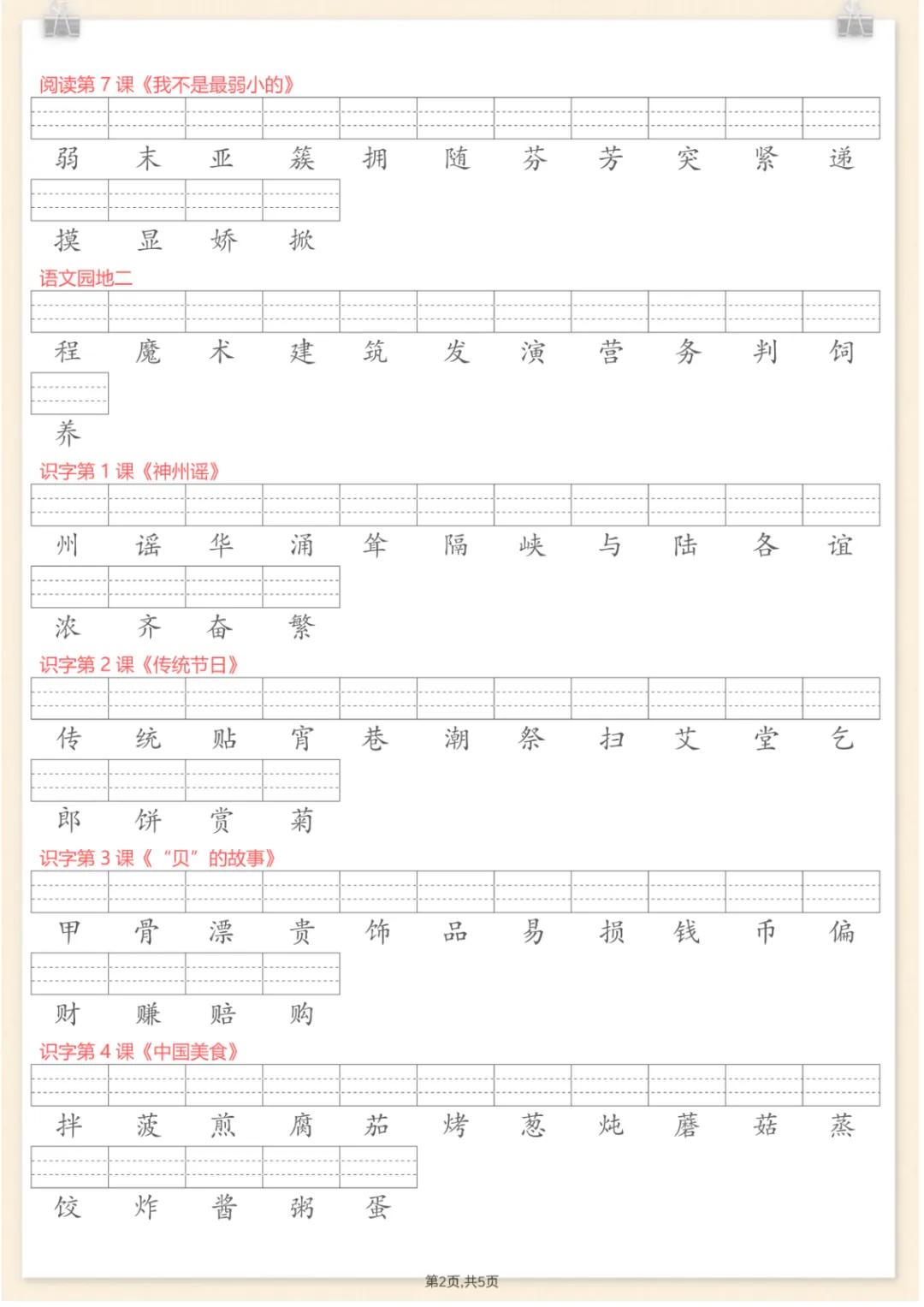 二年级下语文每课识字表注音专项练习,电子版可打印