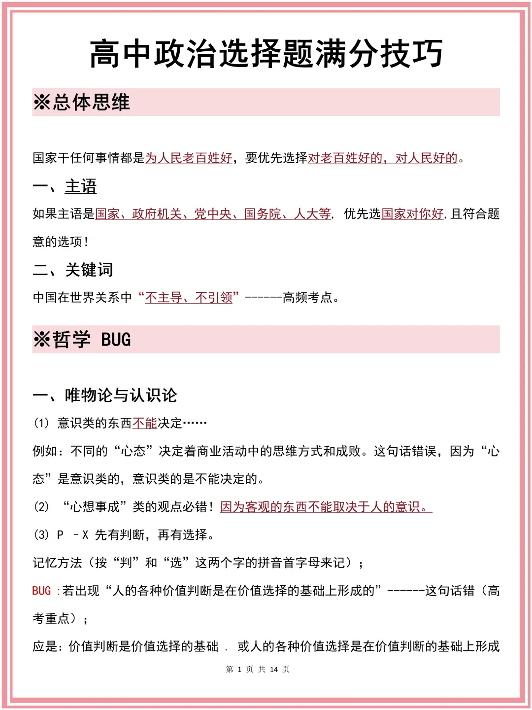 所以今天给大家整理了《高中政治选择题满分技巧》!建议人手一份
