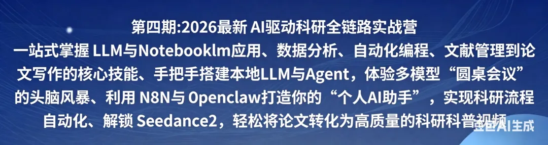2026最新AI驱动科研全链路实战营:贯通LLM与Notebooklm应用、数据分析、自动化编程、文献及知识管理、科研写作与绘图、构建个人AI助手与科研工自动化作流培训班 |