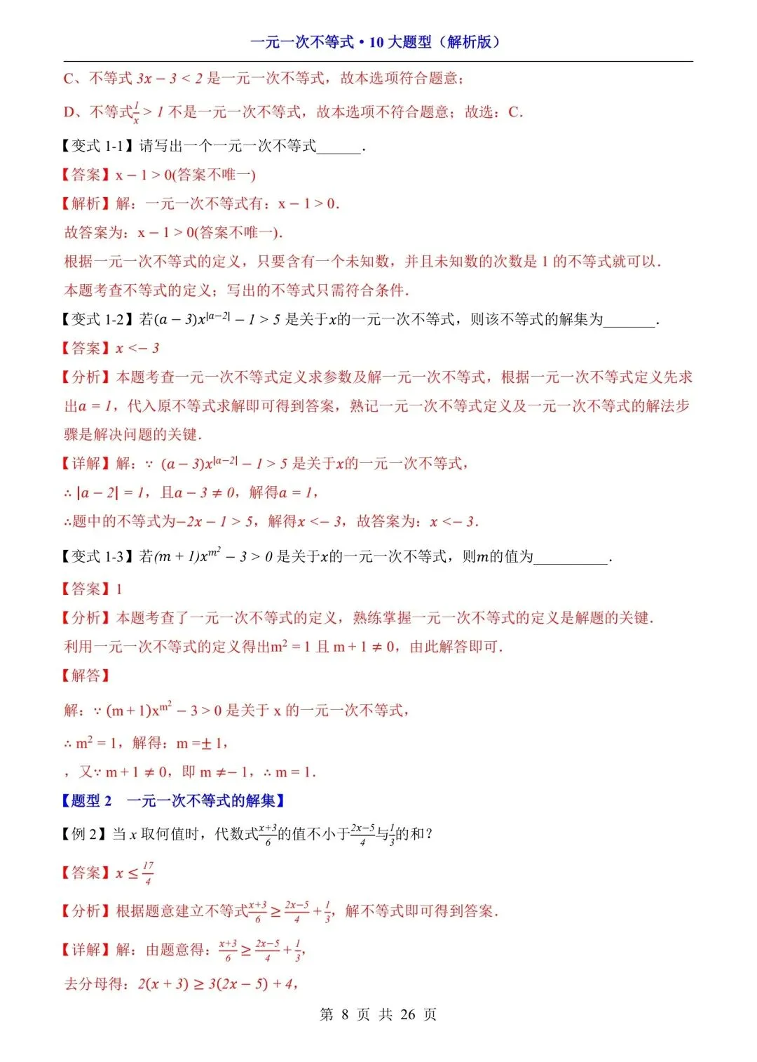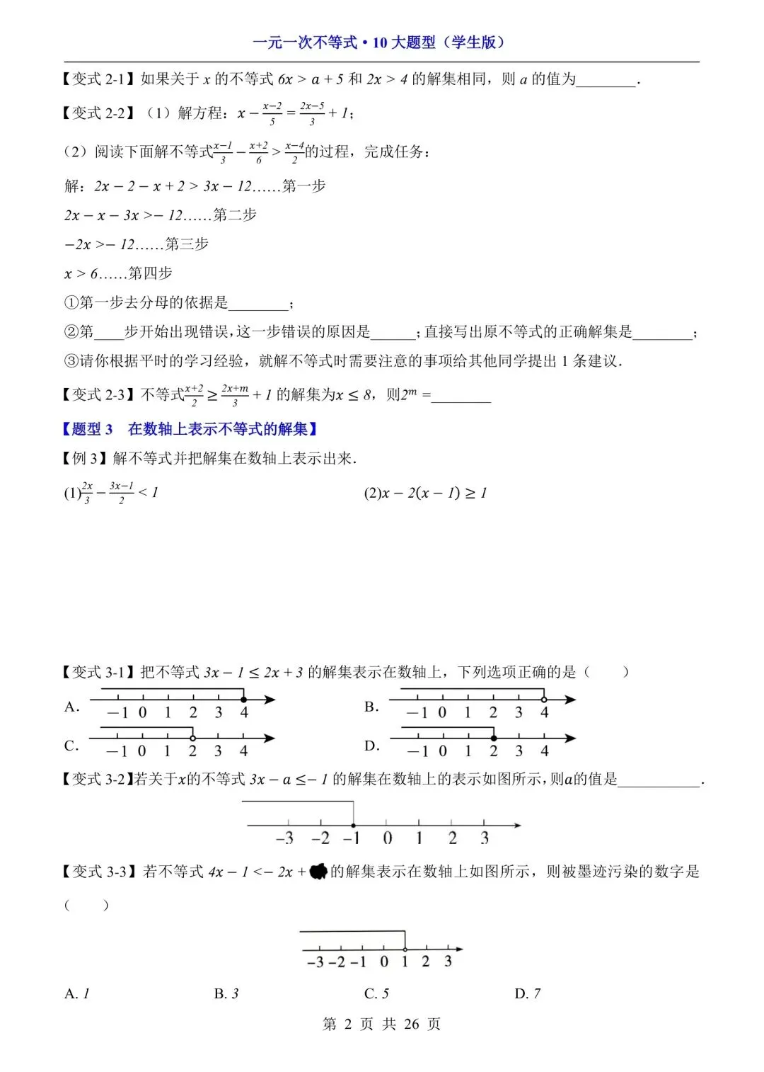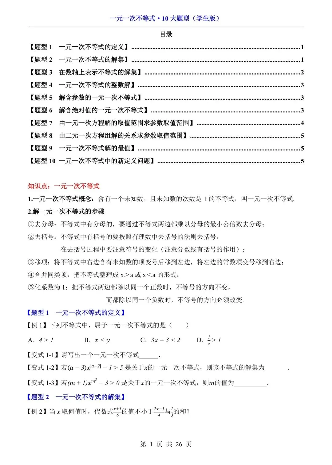 七下数学一元一次不等式-10大题型(可下载打印) 资源下载见图片底部 资源介绍 电子版PDF文档 网盘下载链接详见页面底部 ▼内容预览▼ 版面所限,此处仅展示部分内容 完整版电子版👇 获取完整电子版方式 👇 点击下方卡片关注 进入“瑶瑶妈妈爱学习”的后台 发送消息 资料下载 获取打印电子版方式 重要说明 版权声明: 本公众号分享的资源,所有文件版权归原作者所有,如有侵权可以联系本人删除。本公众号尊重版权,有任何版权问题,可以直接在公众号留言,我看到后会回复。