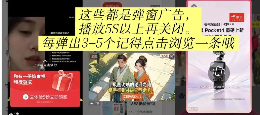 2.做任务过程中会出现弹窗广,不要立马关