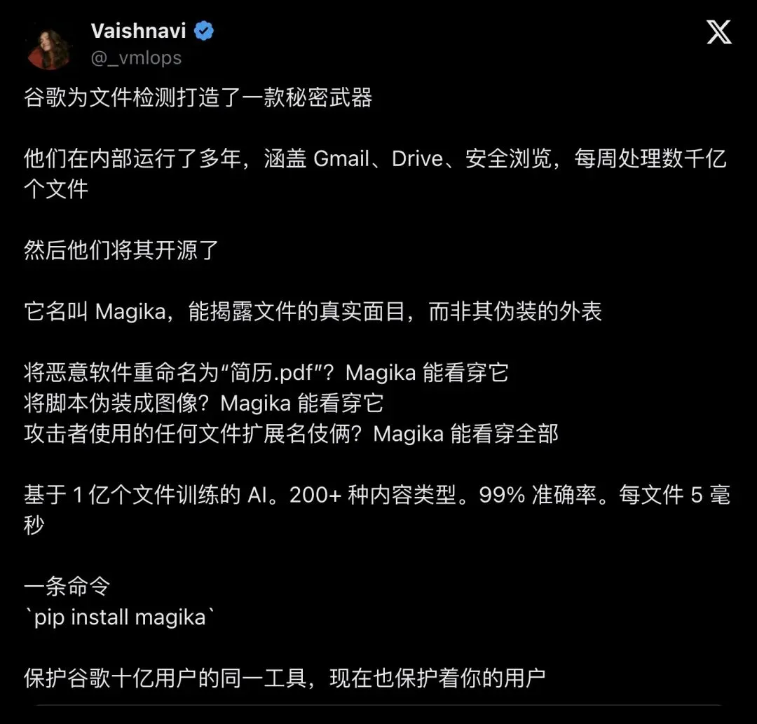 这句话把 Magika 的价值说得比任何技术文档都清楚。