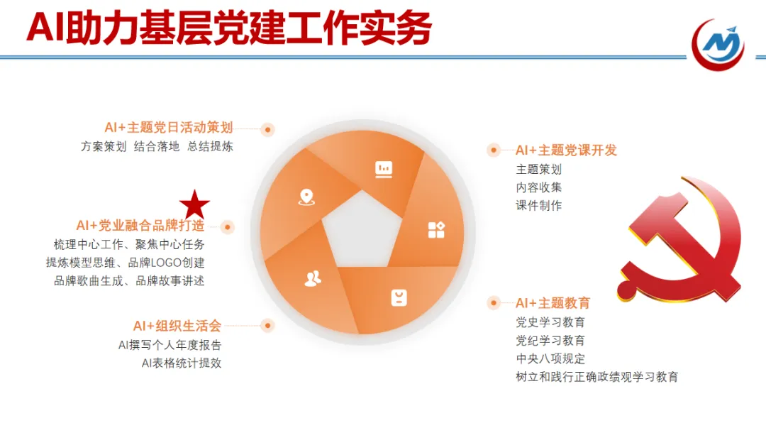 很多支部书记说:“没有 AI,我半年做不成一个品牌;有了 AI,我 3 小时搞定。”AI 在这套体系里,承担四个关键角色: