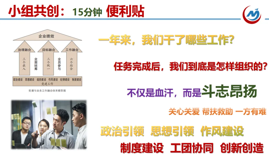 完全模拟年底述评考,既是汇报,也是练兵。一天下来,所有支部:有名称、有 LOGO、有体系、有做法、有图、有稿、有汇报。