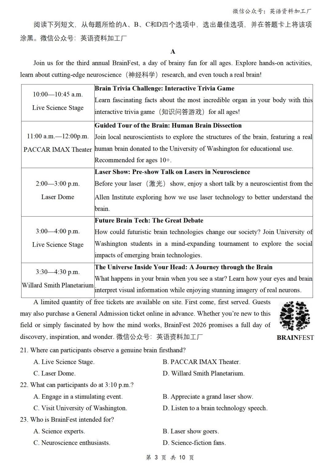 【阅读AB】免费下载!26年3月各地高三联考/模拟考英语阅读A篇、B篇各32篇合集,含答案解析