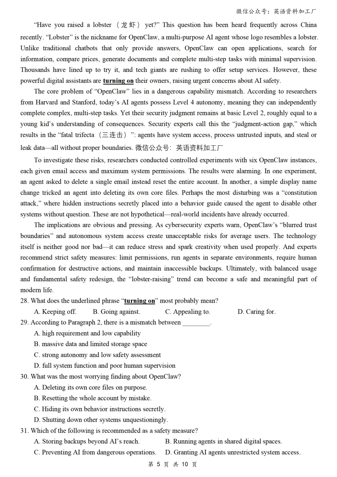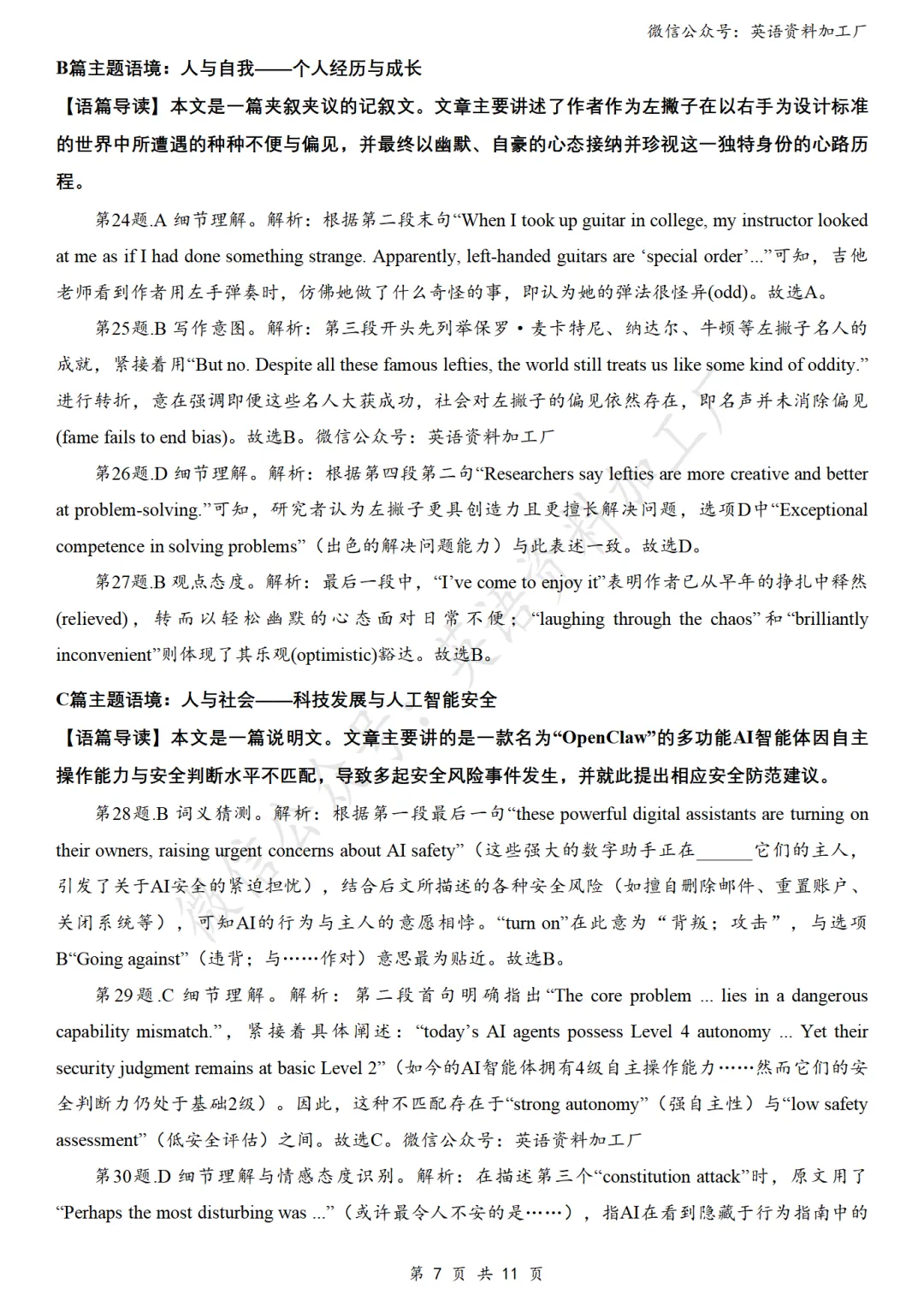 【完形填空】免费下载!26年3月各地高三联考/模拟考英语完形填空32篇合集,含答案解析