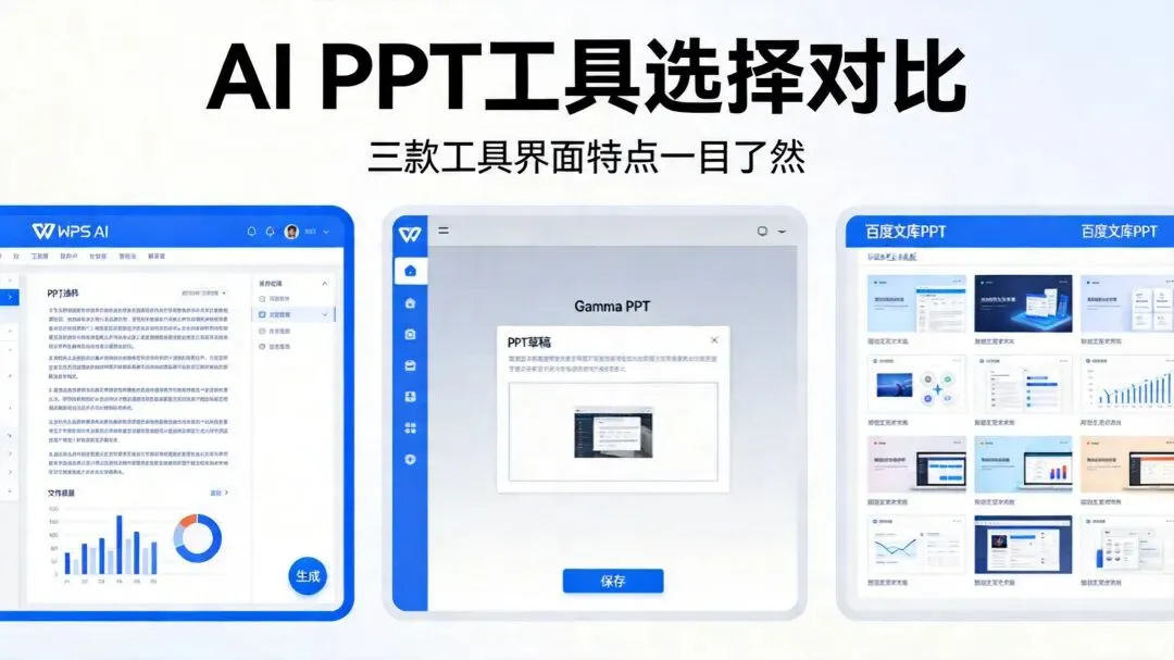 重点提醒:小白选WPS AI(无缝衔接办公软件),设计感选Gamma(现代模板强),专业汇报选百度文库PPT(内容质量高)。