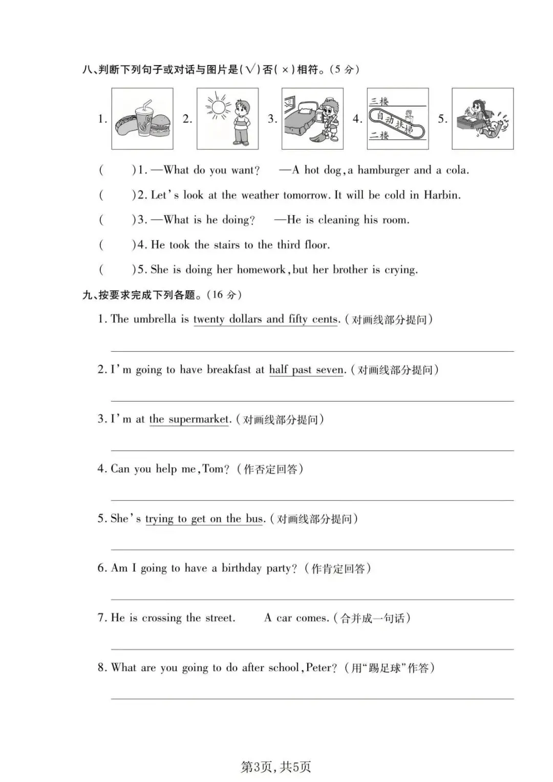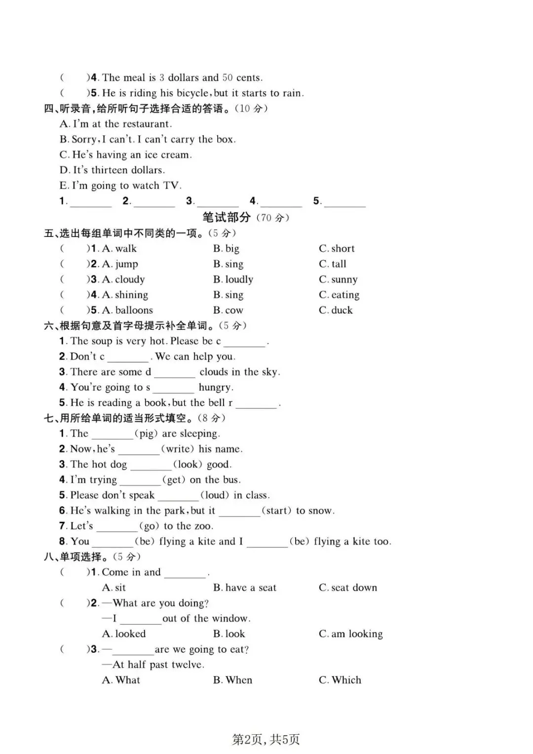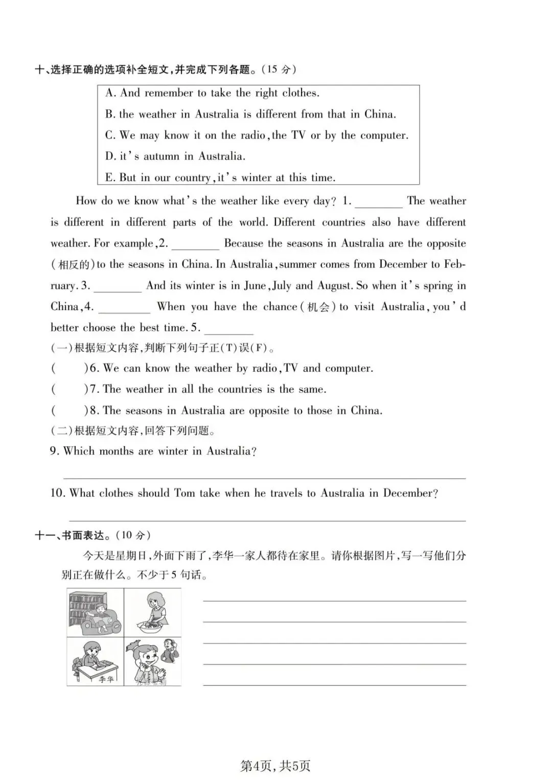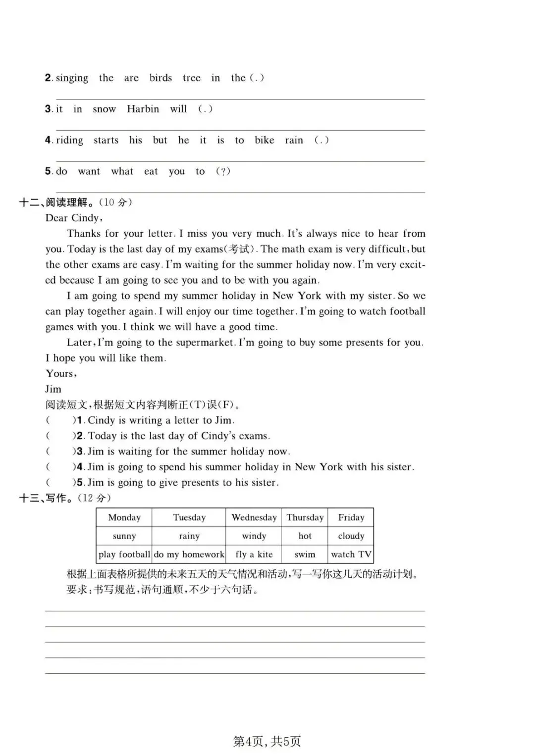 ✅五年级(下)英语 期中真题测试卷《外研版》