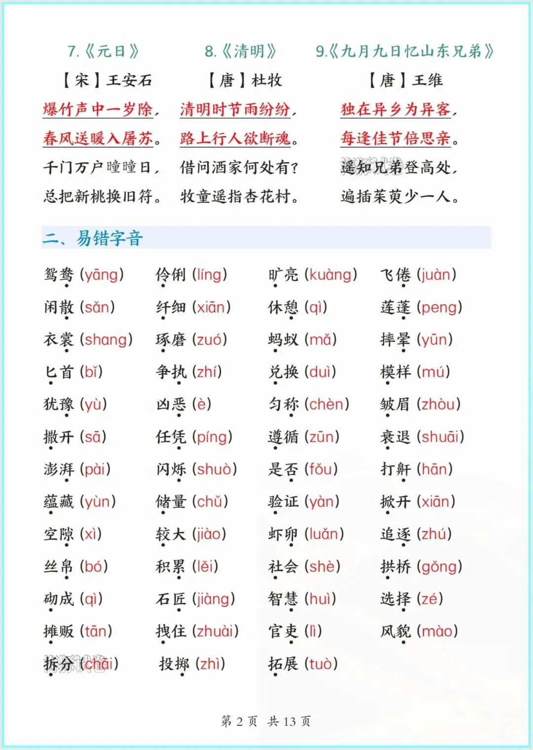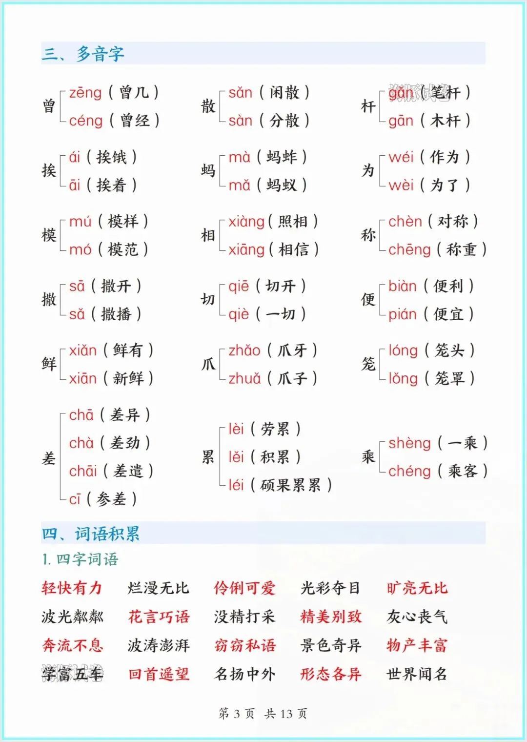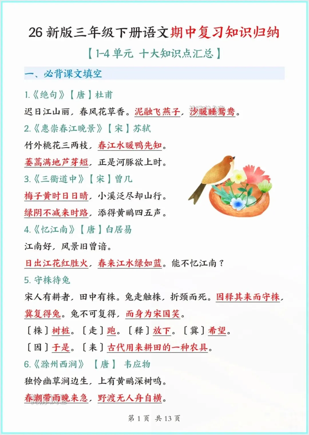 26年部编版三年级下册语文(期中知识点归类汇总)共13页,电子版可打印 大家好,我是冯婉妈妈,今天分享的是;26年部编版三年级下册语文(期中知识点归类汇总)共13页,关注我,每天持续分享更多的优质学习资料。 温馨提示;因篇幅有限,仅展示部分内容 (文末有完整版电子版领取方式) 完整电子版: ①:在公众号对话框中回复:4218 (不是在“留言”中发数字)