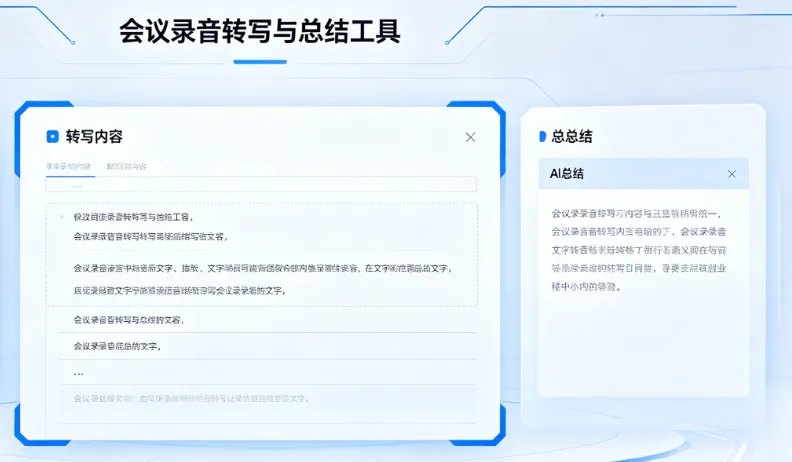 打开一个会议助手,点“录音”,结束后几分钟,一份结构清晰的总结就出来了。