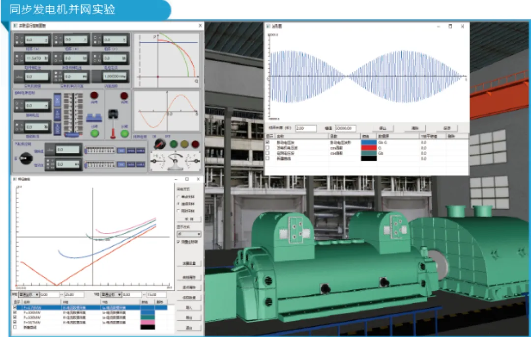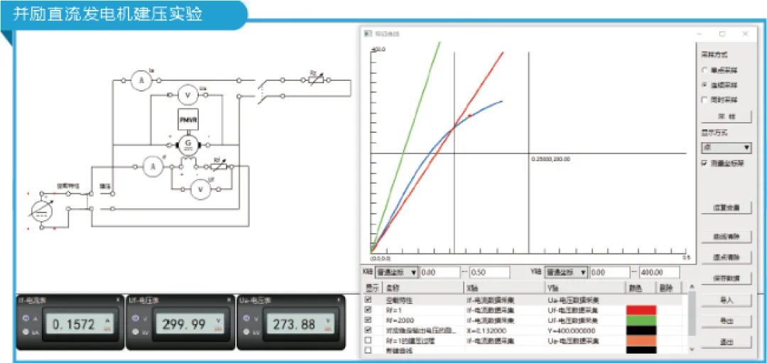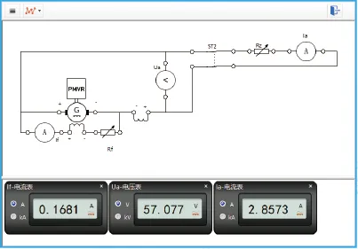 搭建完的实验电路可以进行运行调试,系统会根据用户设置的参数,针对每个元件创建数学模型,并在此基础上构建特性方程组,通过对这类线性与非线性方程组的快速计算实现各类电机实验的数字化仿真。