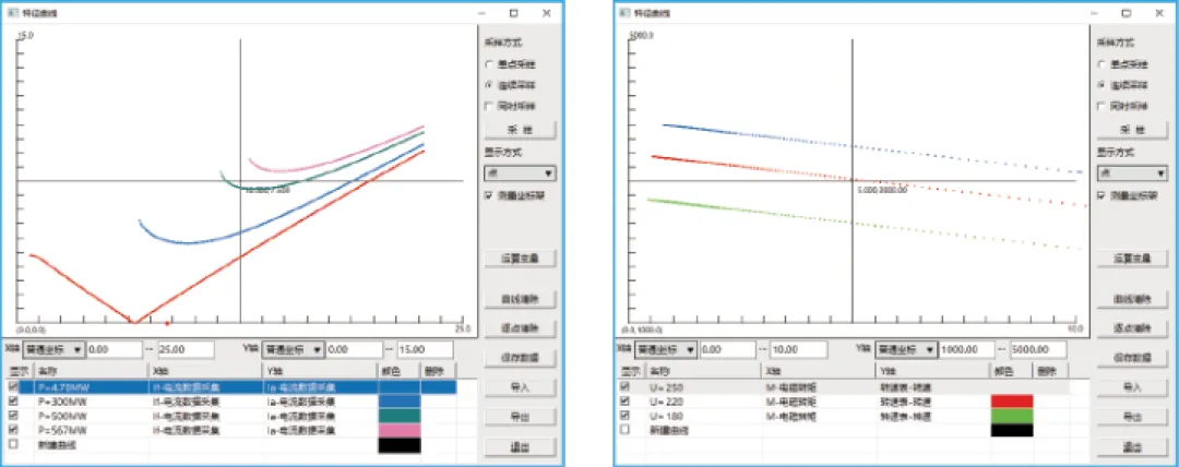 用户可通过特征曲线界面,实时采样实验数据,然后绘制出特征曲线; 在波形曲线界面中可将采集的实验数据进行混合运算后,绘制出波形曲线。