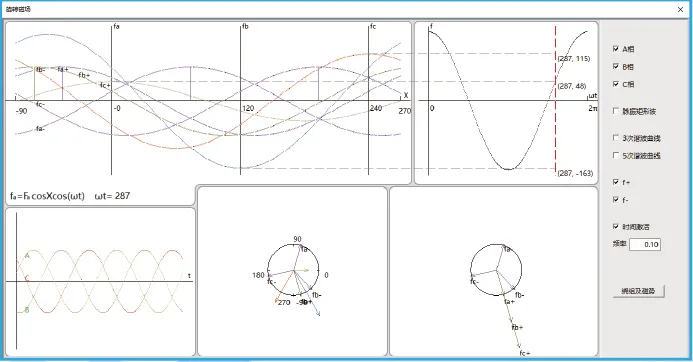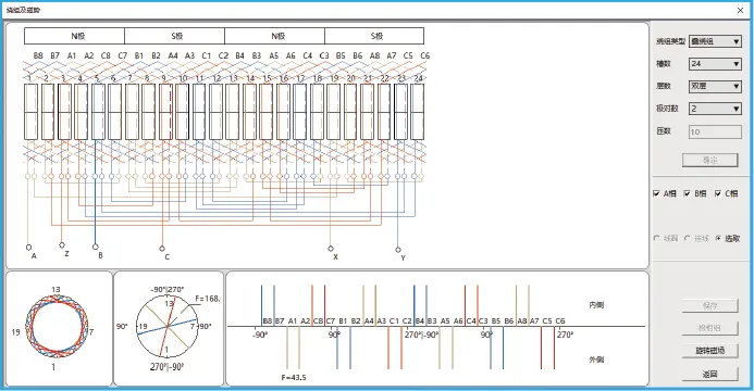 可根据用户编制的绕组类型及绕组情况,实时显示A、B、C三相波形及三次谐波五次谐波形等。