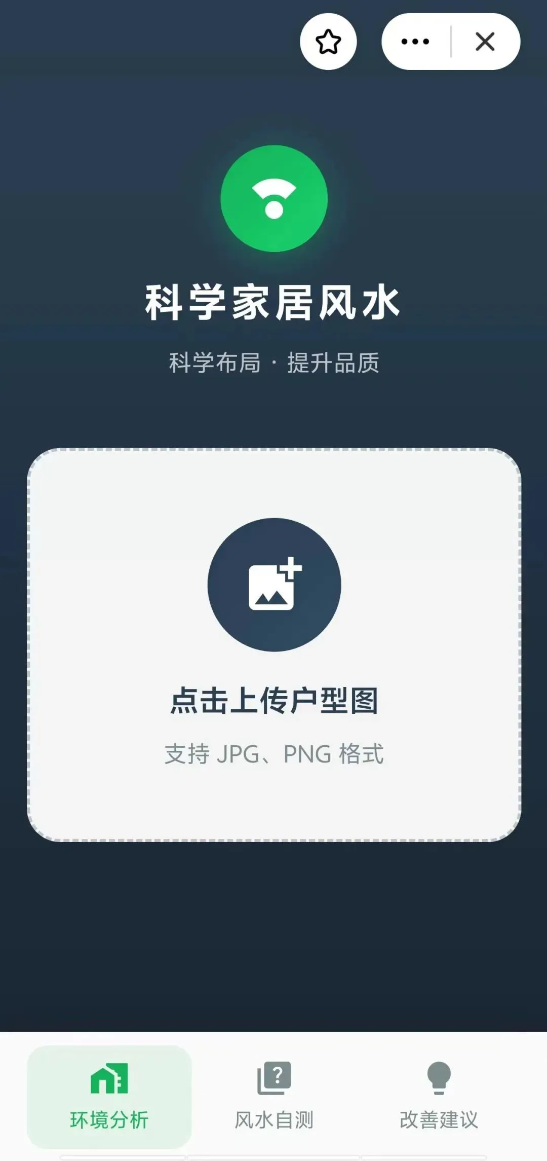 抱着试试的心态,我在灵光里输入了一句:“做一个科学家居风水小应用”。结果不到一分钟,它就生成了一个完整的工具!界面不仅有环境分析、风水自测、改善建议这些功能,最绝的是,它不是那种死板的模板,你可以上传自家户型图,它就能给你量身定制优化方案,这也太神奇了!