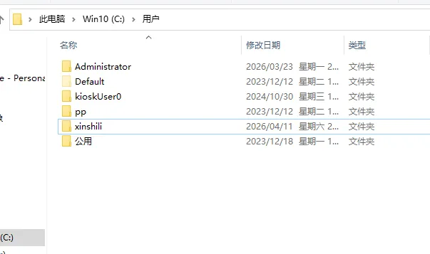重启后再次登录管理员账户,打开C盘进入「用户」文件夹,