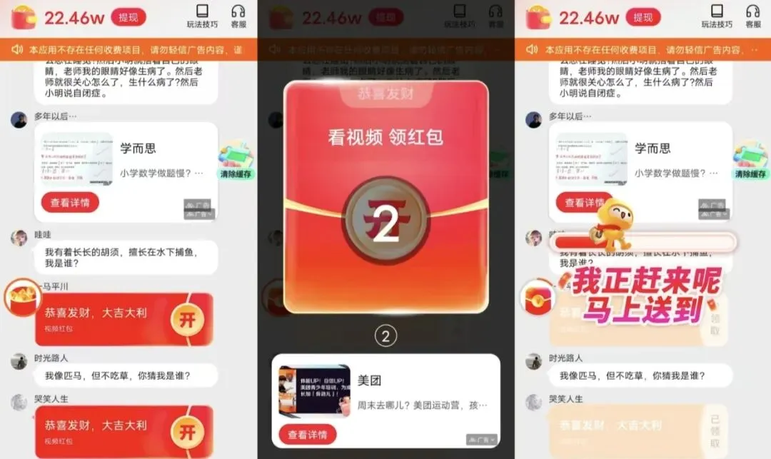 2.做任务过程中会出现弹窗广,不要立马关