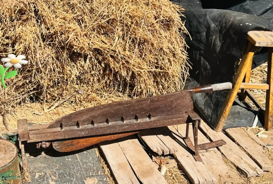 图中这把大家伙叫老铡刀,全身铁皮,刀身跟门板似的厚实,带着锈色,下面支着木头腿,院子里只要一架起来,咔嚓一声能把半抱草料切得服服帖帖,冬天牛棚飘着热气,我爹一脚踩下刀杆的时候,地上碎草飞溅,小时候光看着都觉得带劲儿,那刀片沉得很,换谁都得使全身力气,现在饲料随手买,省了力,这动静可再也听不见了。