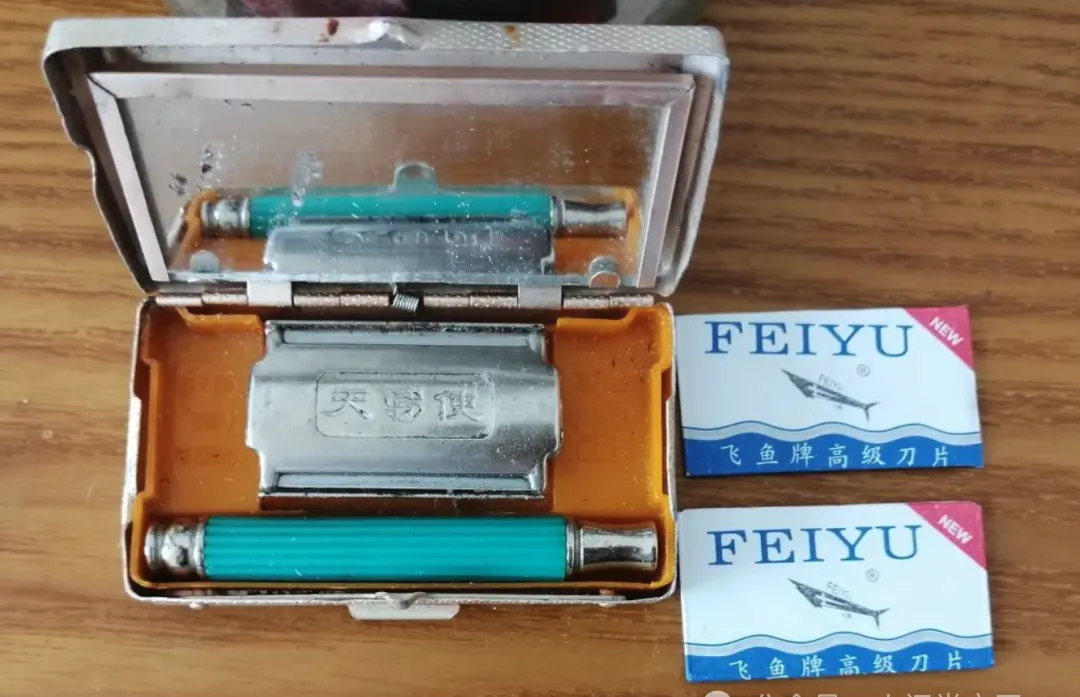 这个盒里装着是老式剃须刀,刀架和刀片全收纳得整整齐齐,银光带着点老旧,塑料把手颜色还挺俏皮,打开盒子一股肥皂混合铁锈味,男人们早起冲下凉水,手痛快一抹,刀片哗啦一下安上,脸上推一推,一不小心还真容易拉破皮,家里以前都是用这种,后来电动刀一普及,金属这凉冰冰的“仪式”慢慢淡了,只剩下个老盒压在抽屉角落,爷爷老是念叨,“这才叫剃得干净”。