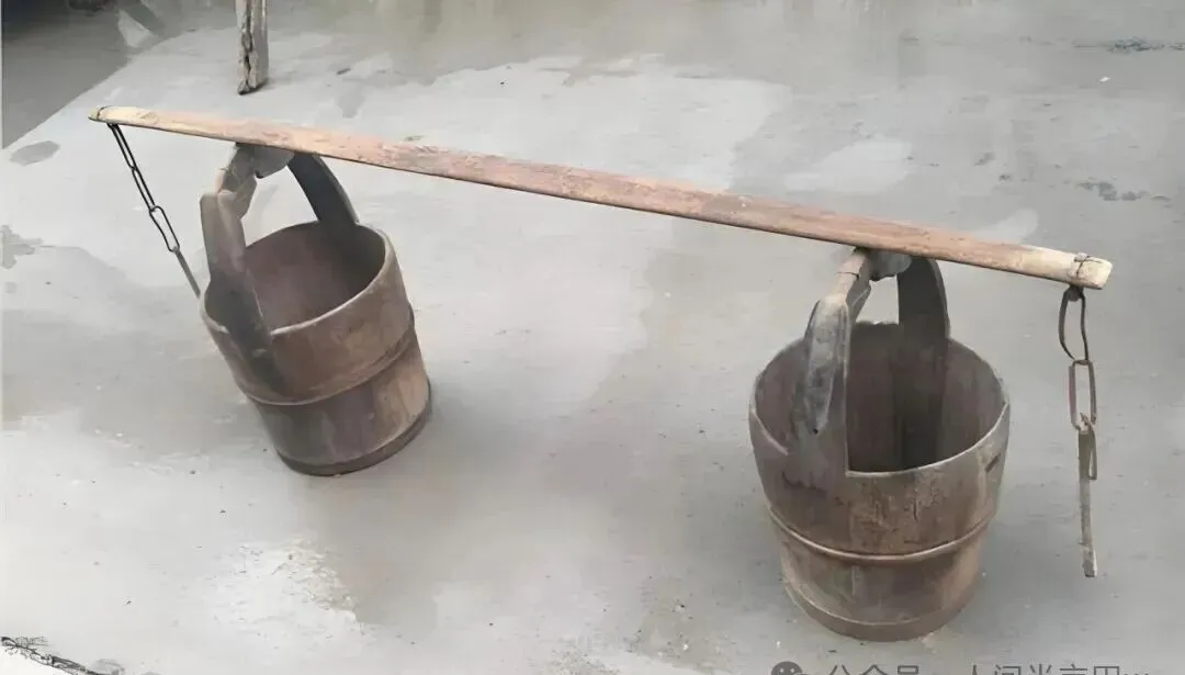 这组合是粮秤木桶和扁担,挑粮、运粮都离不开,木桶宽宽的,两边用麻绳缠紧,扁担往肩上一搭,走路颠簸,家里长辈说“这活只要肩扛脚踏,你就能靠自己过一天”,现在车到地头,谁家还靠肩扛,木桶静静躺在墙角,只剩下“日子压肩膀”的往昔劲头。
