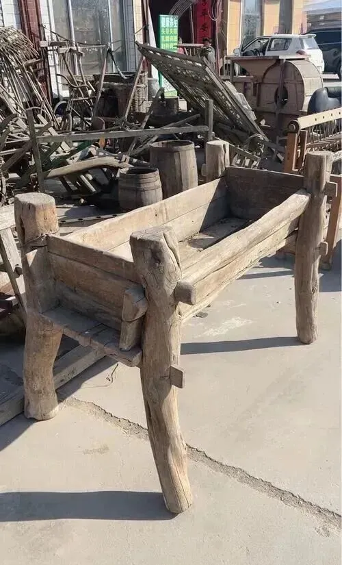 这张图里叫木头食槽,牛羊喂食专用,一根根厚木板拼扣得结结实实,冬天拌点热水糠,家里牲口一低头就吃得拉风,槽边上划痕满满都是时间印记,现代农村养殖讲设备,这老槽却只有用过的人才懂得其中的门道。