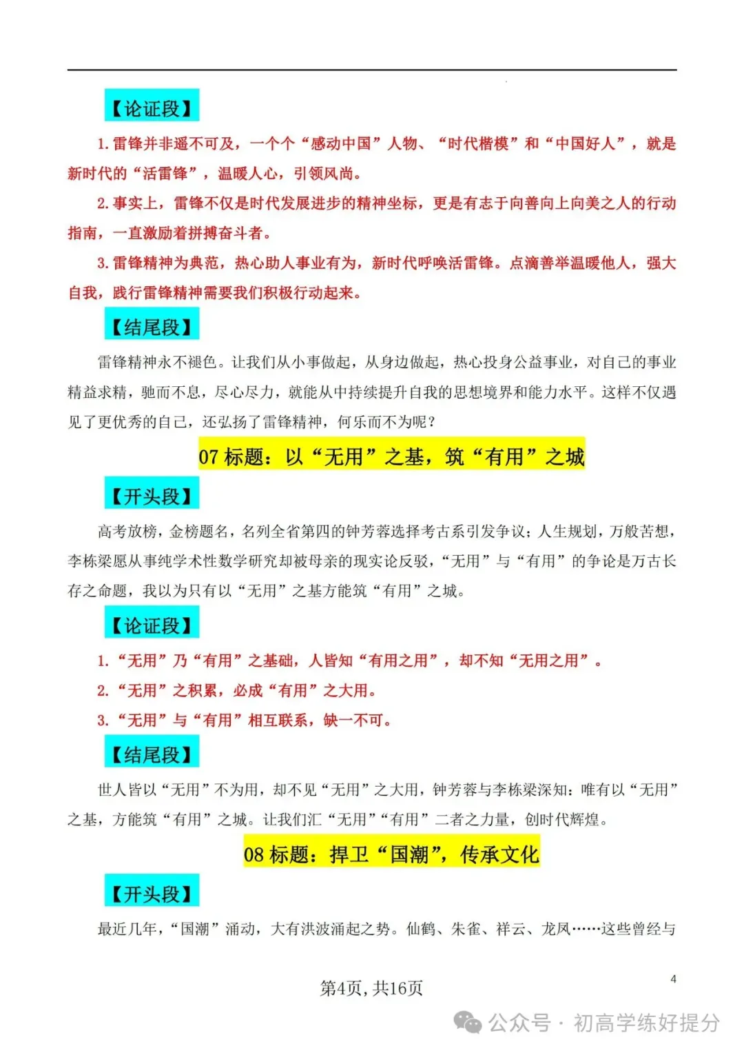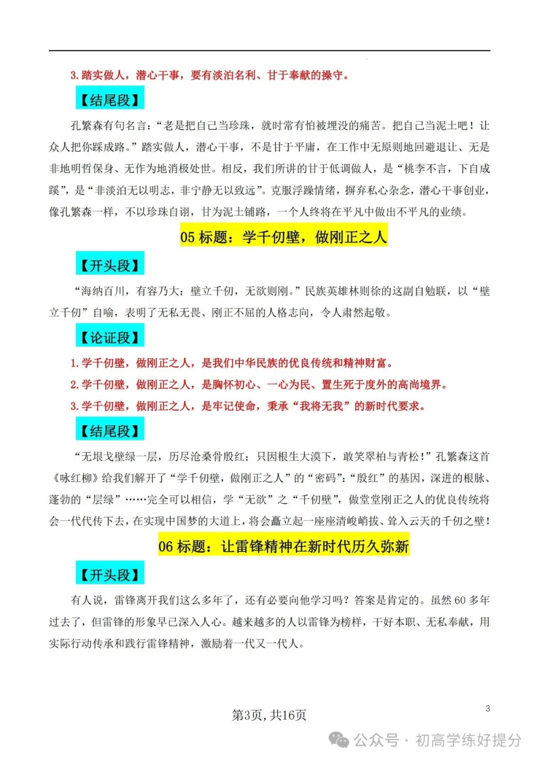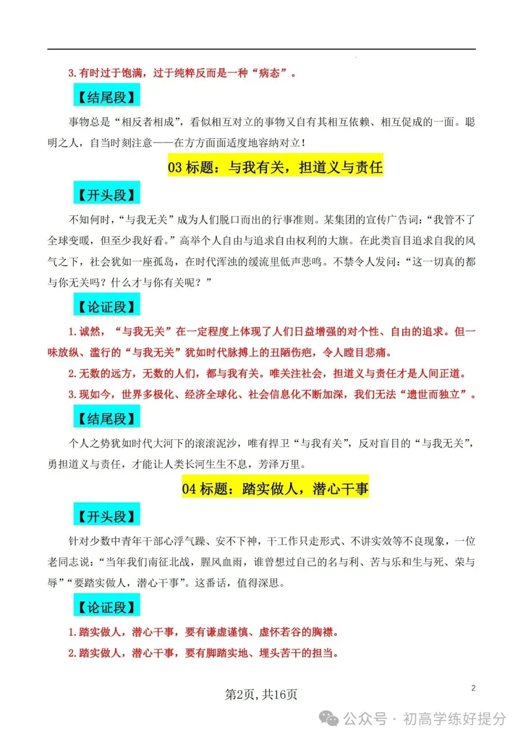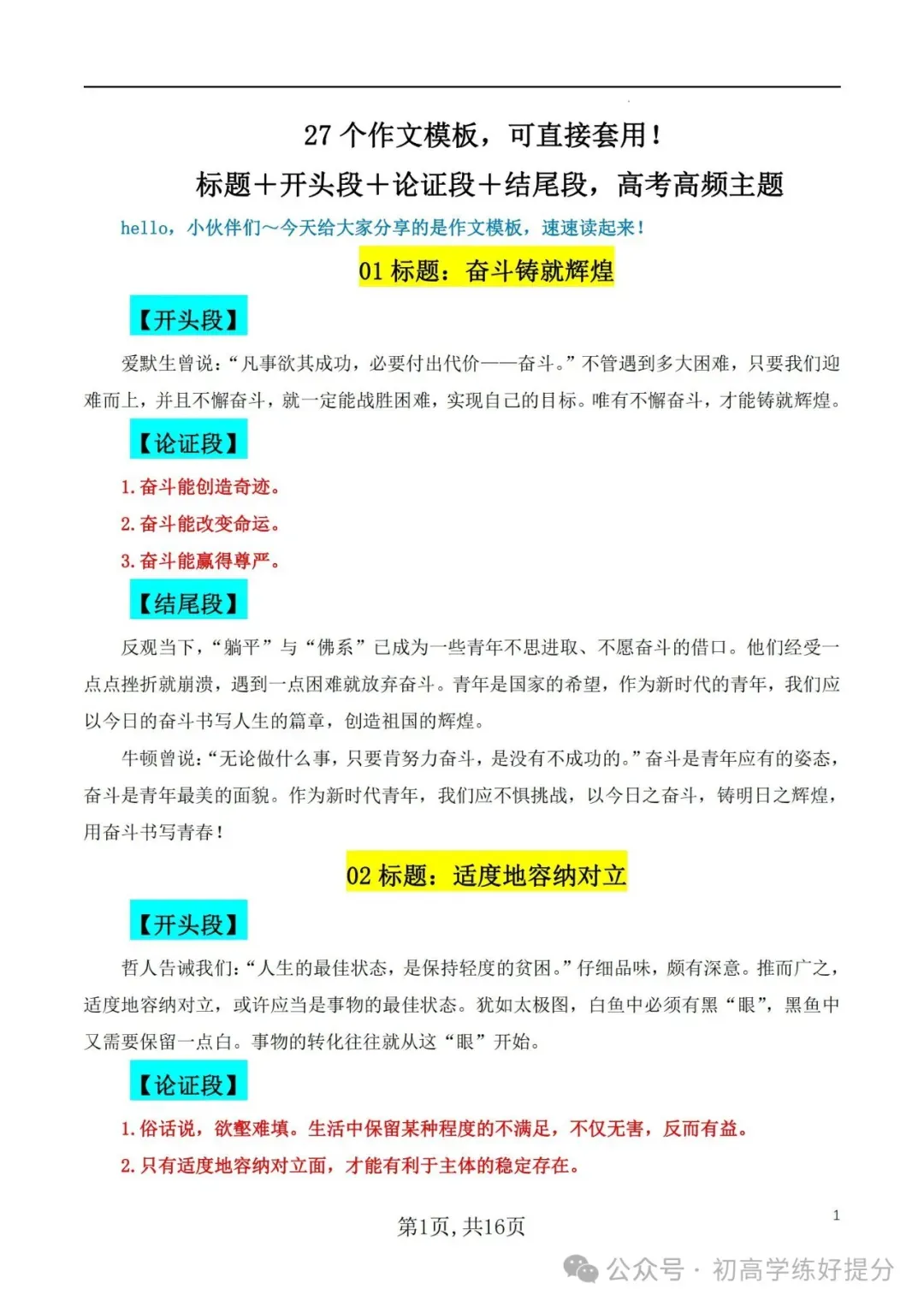 【高中语文】27个作文模板,可直接套用! 作文标题+开头+分论点+结尾~附电子版,~