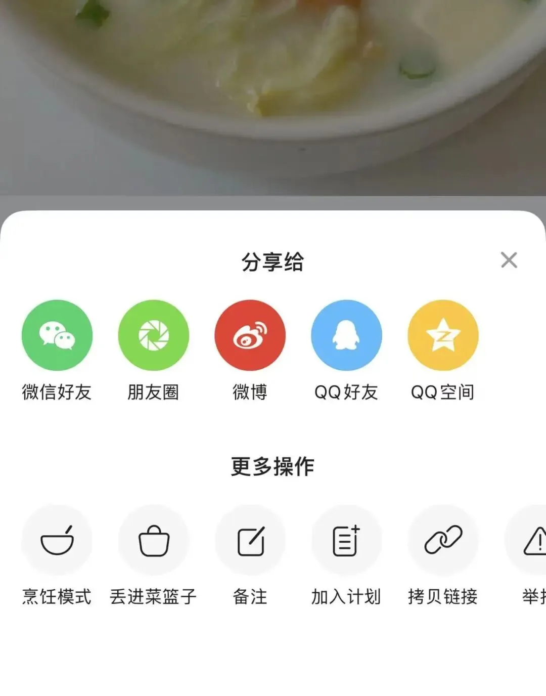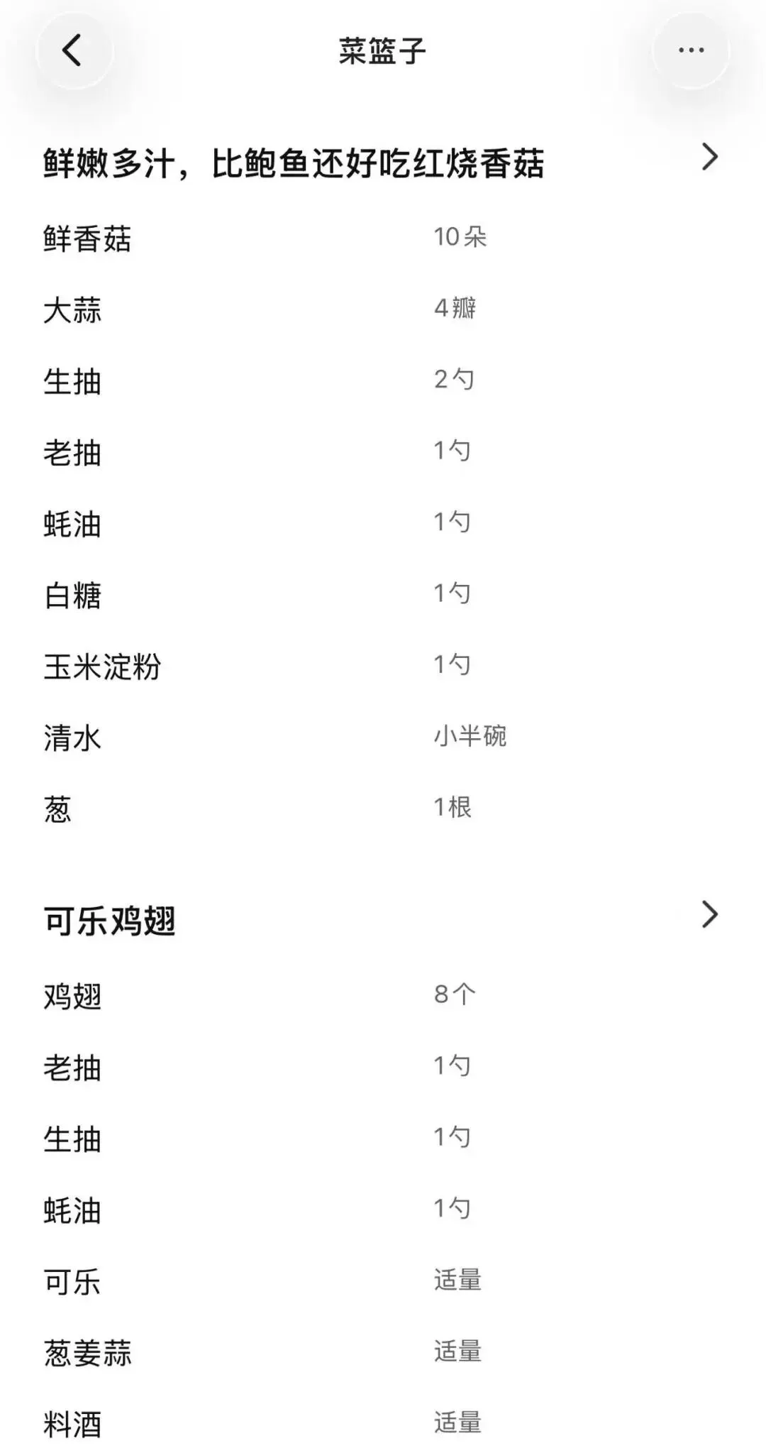 只要看到喜欢的菜谱,就能收藏菜谱,还可自定义菜单,在我的收藏中查找。拥有一键丢进菜篮子功能,自动合并重复食材、智能换算用量,生成清晰购物清单,买菜照着勾即可。