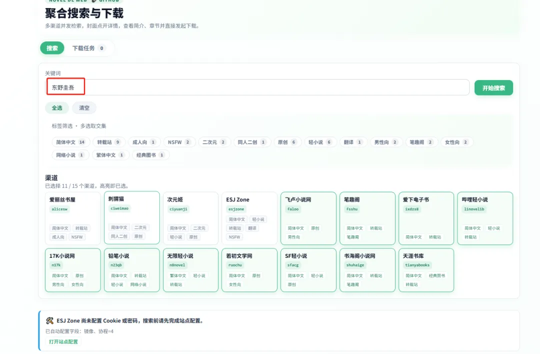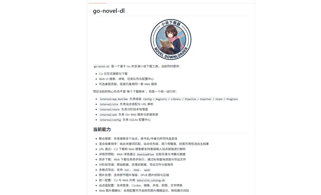 作为一名小说爱好者,常为阅读付费。最近发现一个好项目,支持多源搜索与下载。该项目名称为:go-novel-dl,有了它,可以省了不少零花钱!