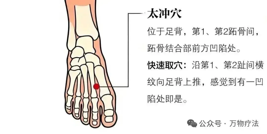 万物疗法公众号提示肝火大、易怒的人,这里通常会很痛,甚至能摸到一个小硬结,按揉时间左右脚各5-10分钟左右。