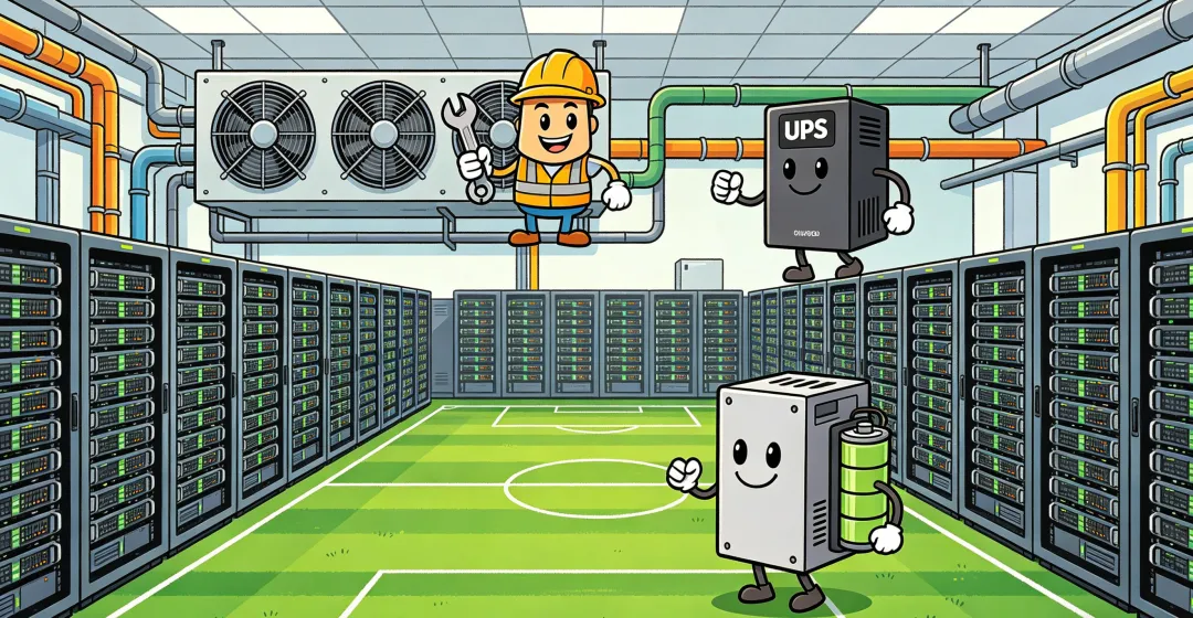 停电靠UPS和备用发电机解决;过热主要靠三种散热方案: