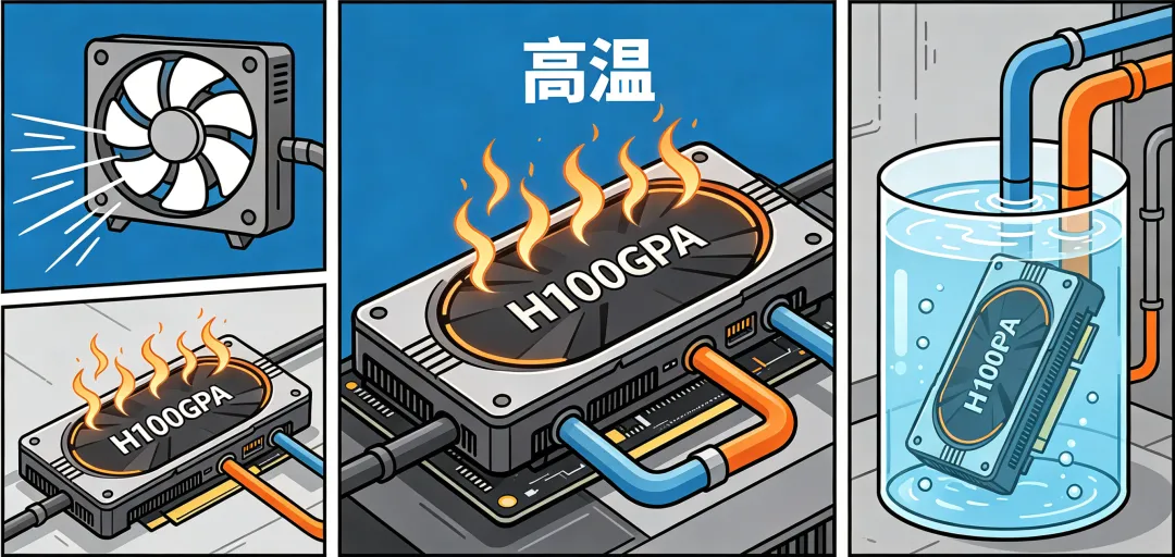 H100工作温度达80-90度,过热会降频甚至烧毁,数据中心最怕停电和过热:
