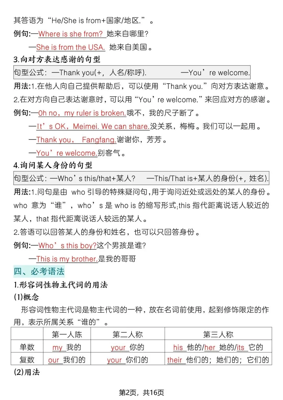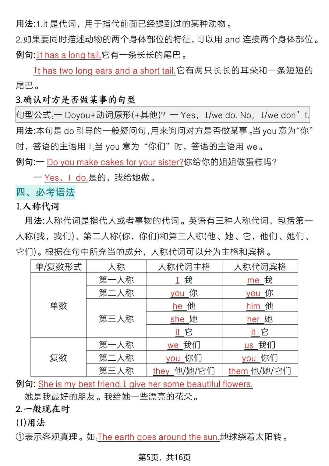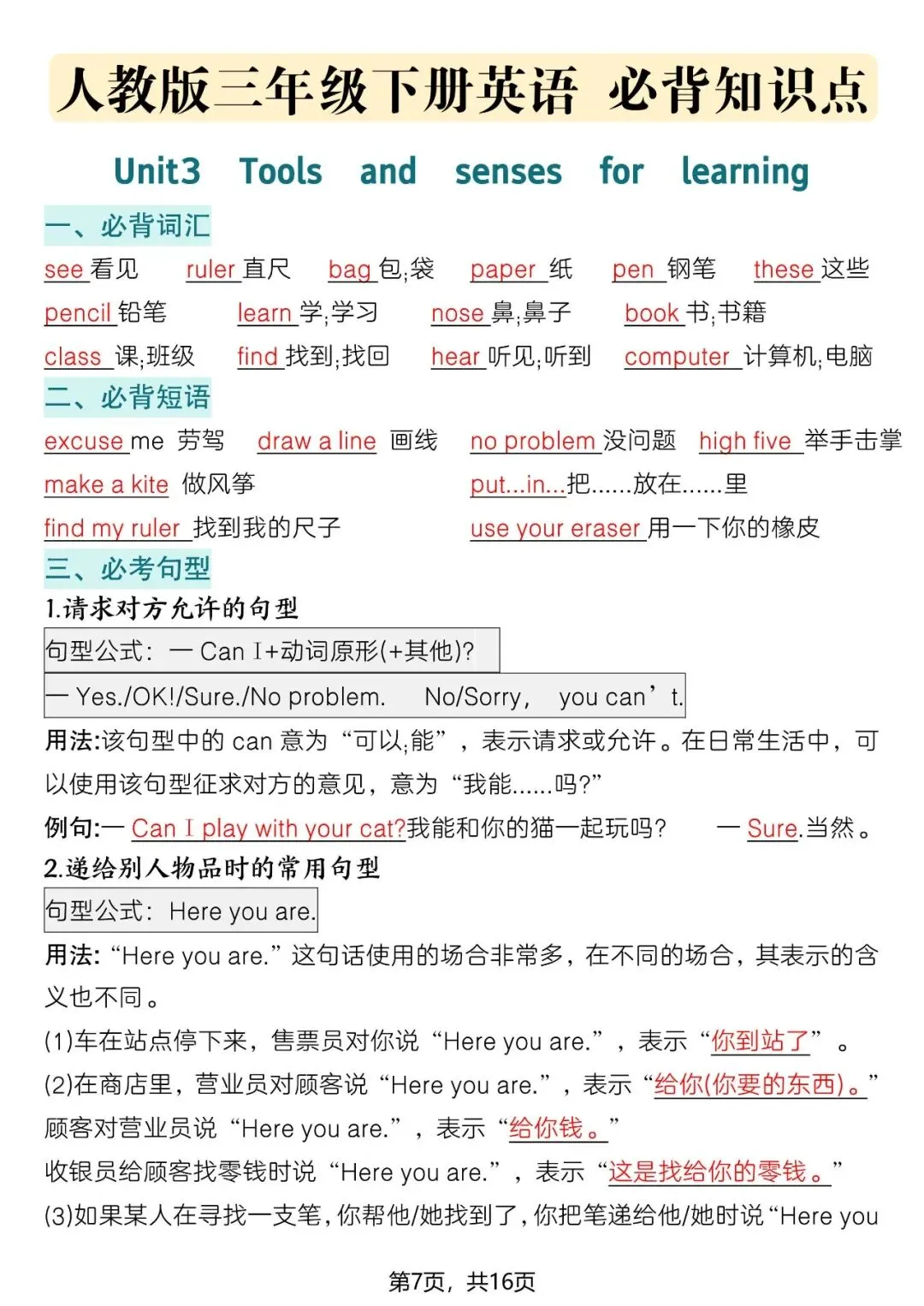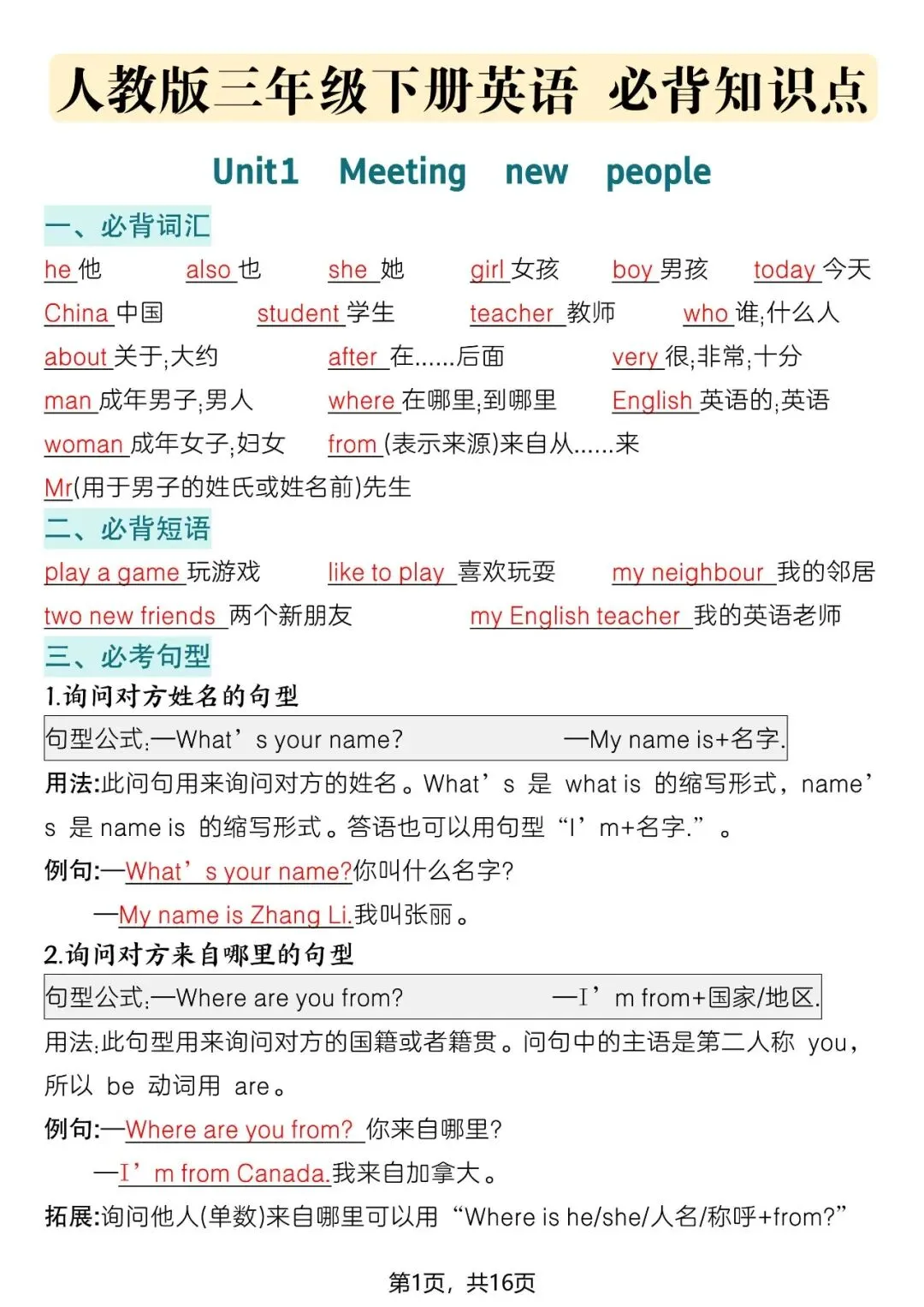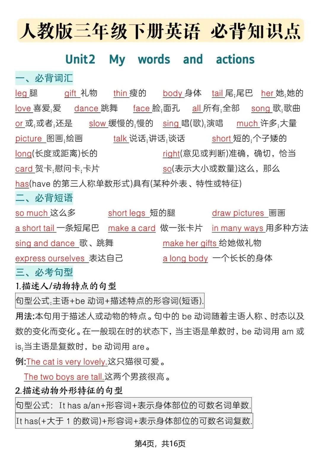 大家好,我是小敏妈妈,今天为大家分享的是;2026年春人教pep版《三年级下册英语1~6单元期中期末复习必背知识点总结》共16页完整电子版可打印