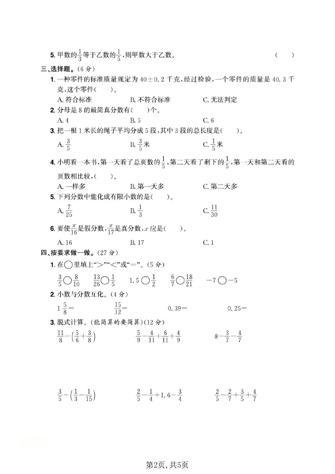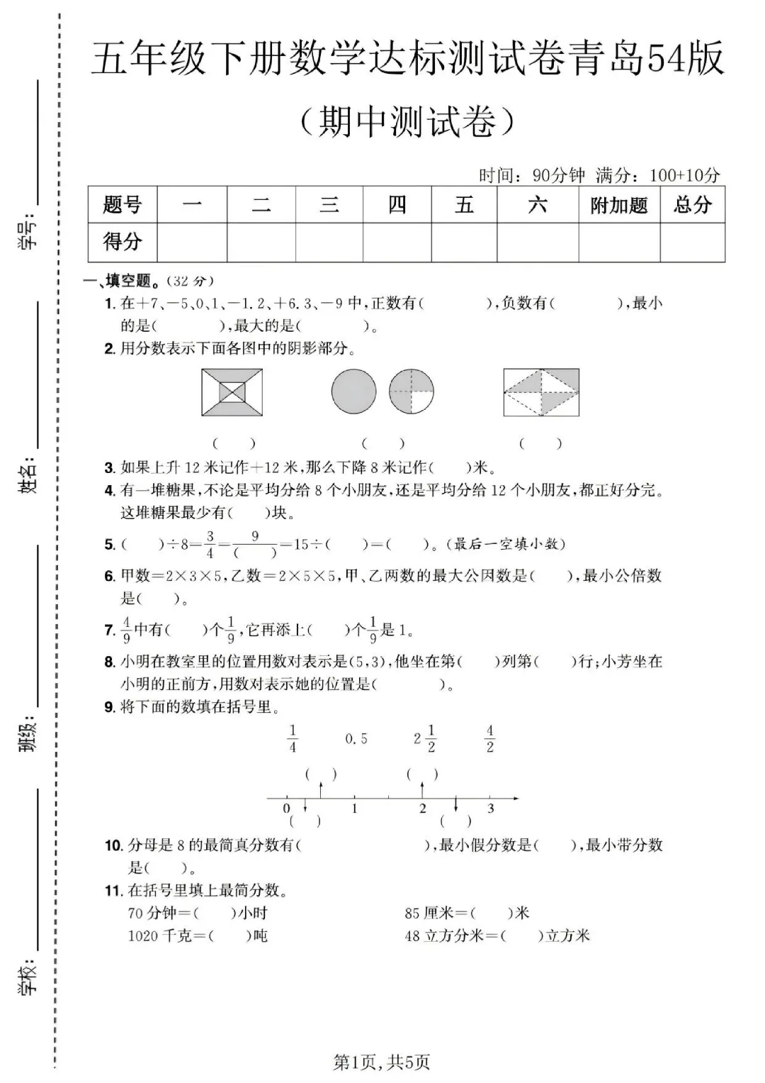 今天给家长们分享的是:2026年春新五年级下册青岛54版数学《期中考试拔尖测试卷4套》附答案解析‖高清电子版可打印