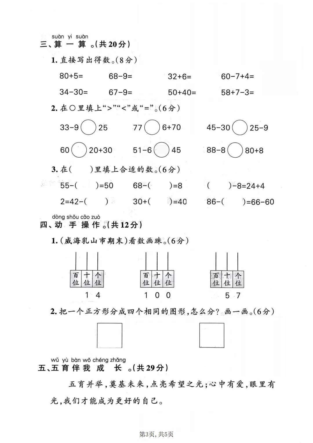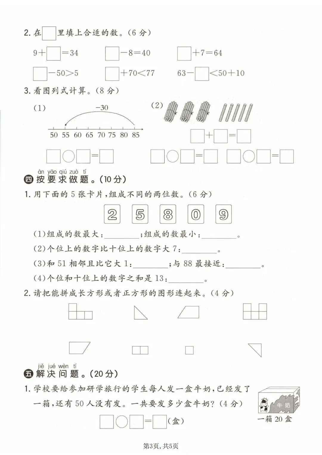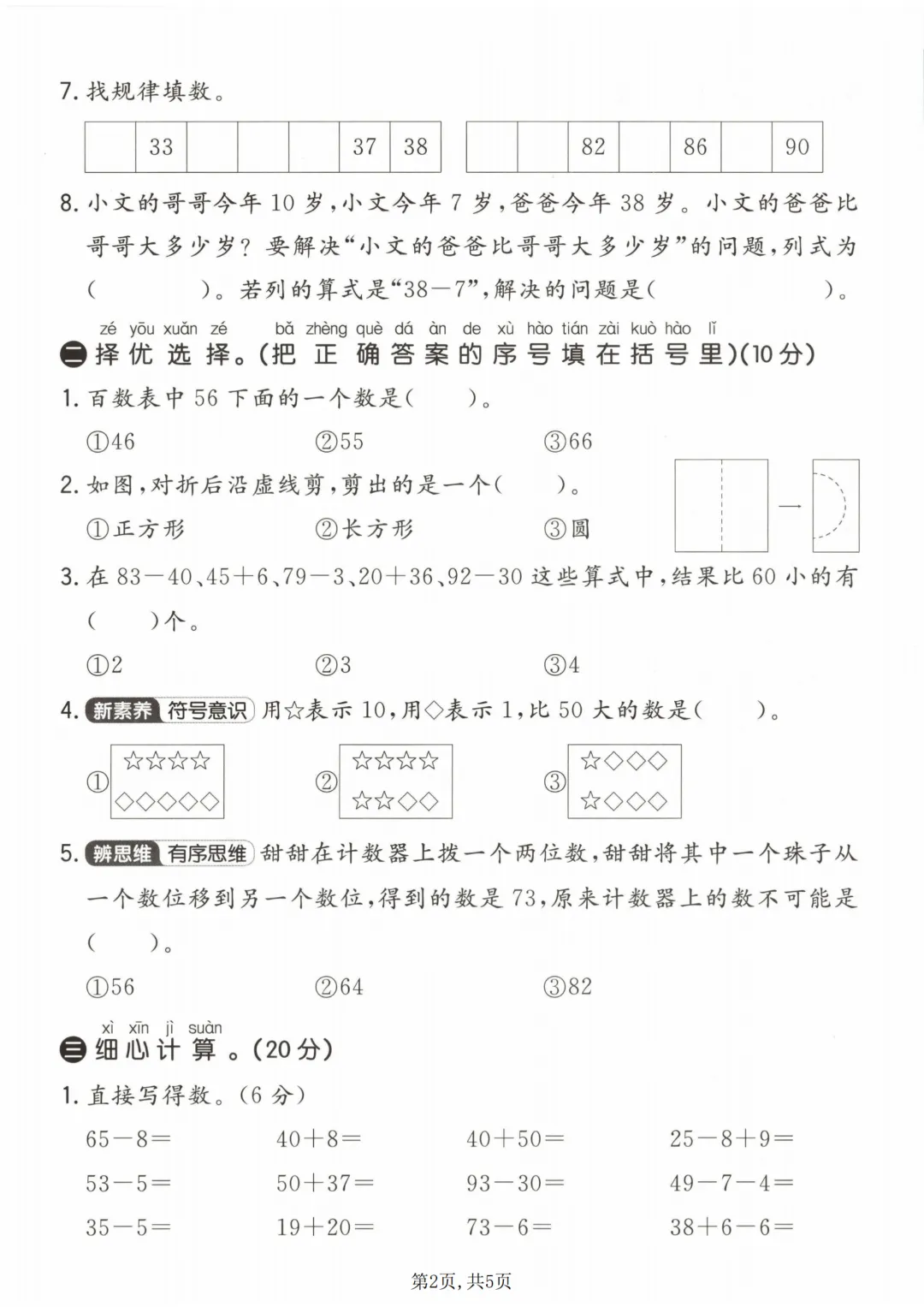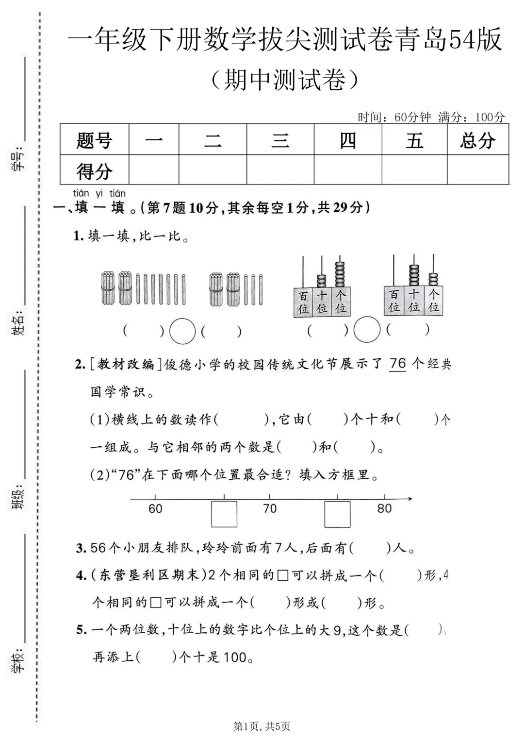 今天给家长们分享的是:2026年春新一年级下册青岛54版数学《期中考试拔尖测试卷6套》附答案解析‖高清电子版可打印