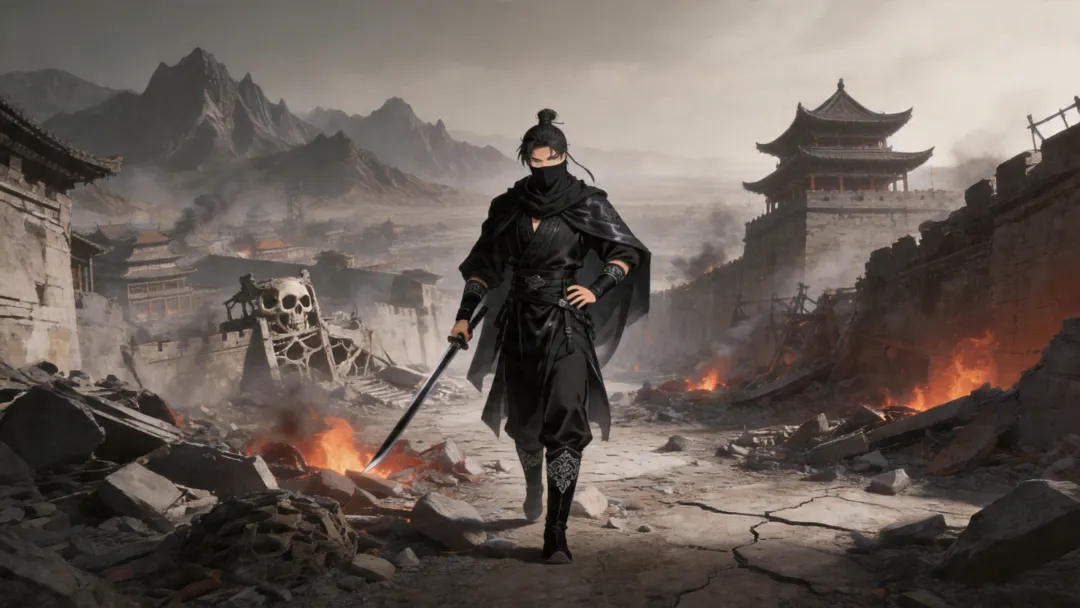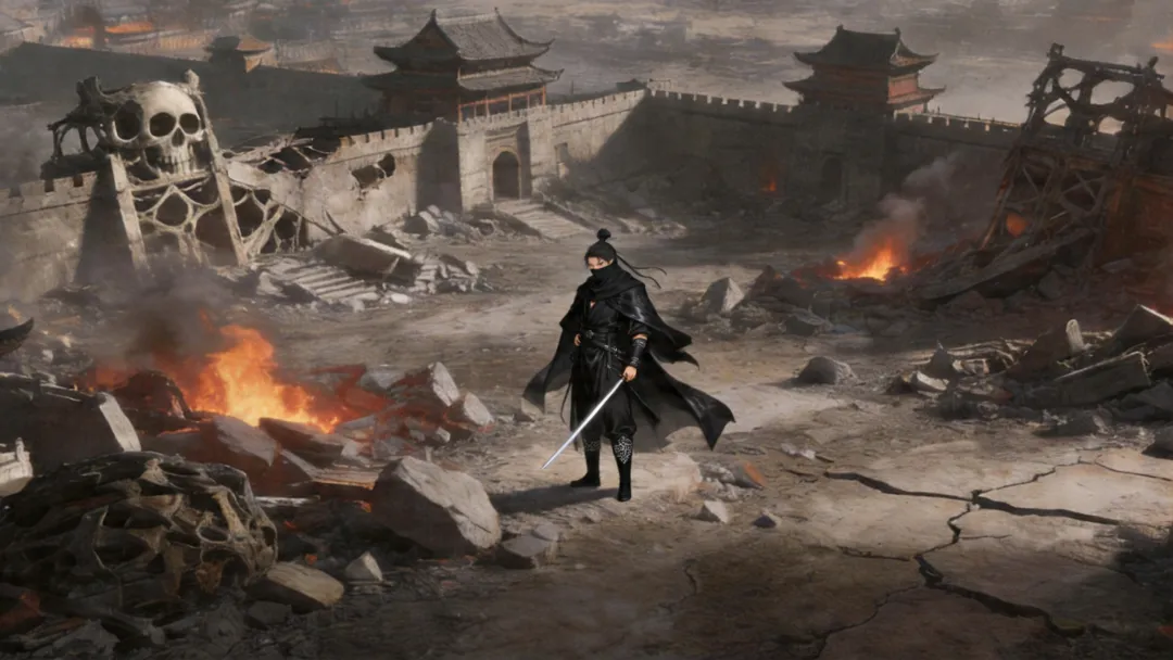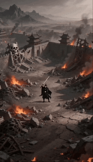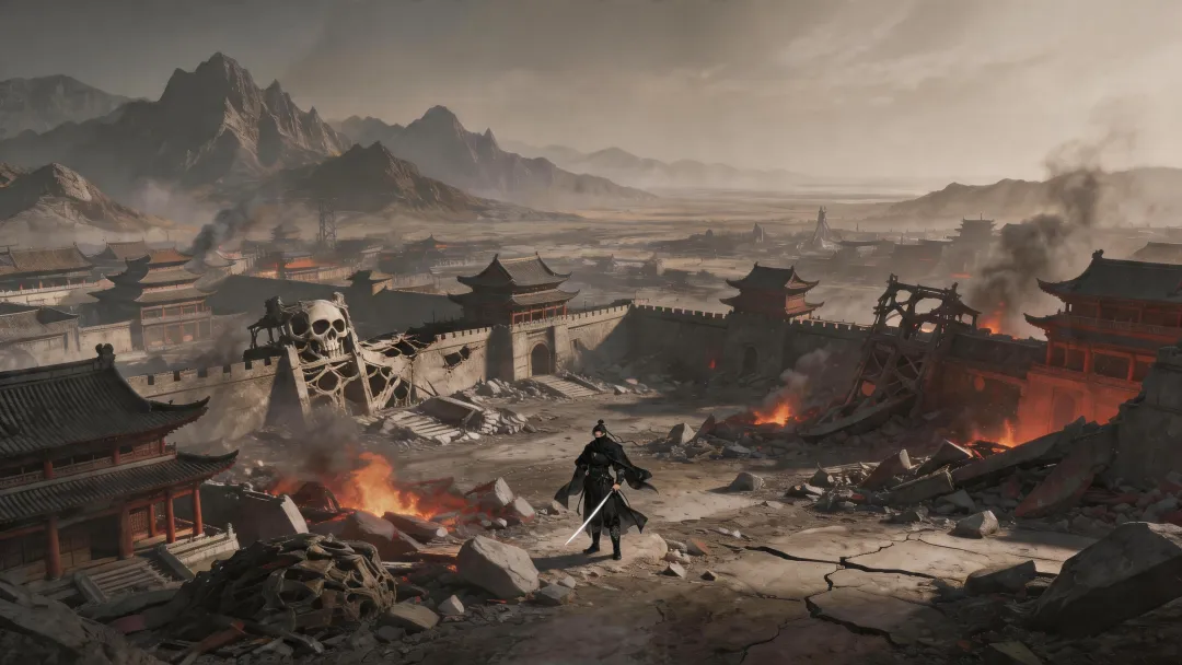 人物只是画面中的一个小点,重点展示场景的宏大与荒凉。