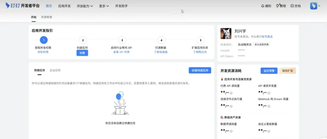 登录开发者平台后,开始创建专属应用,操作路径非常清晰: