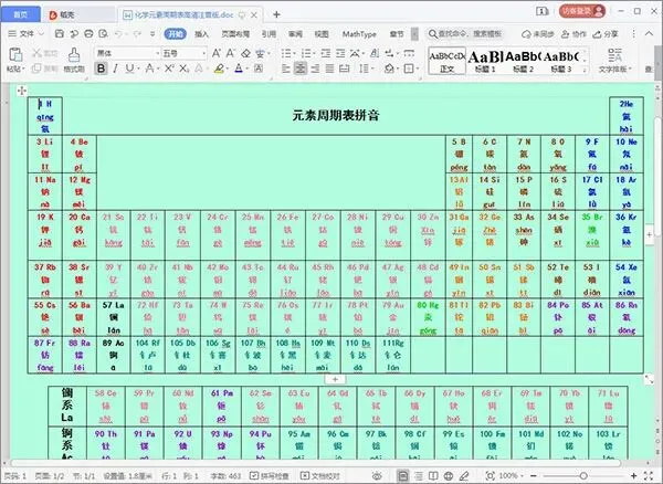 化学元素周期表高清注音版特点