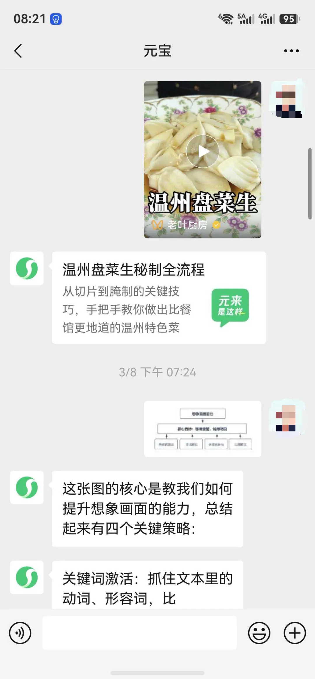 这对于刷信息流来说简直是时间管理神器。大量视频内容,其实核心信息几句话就能说清楚,元宝帮你做了这层过滤。