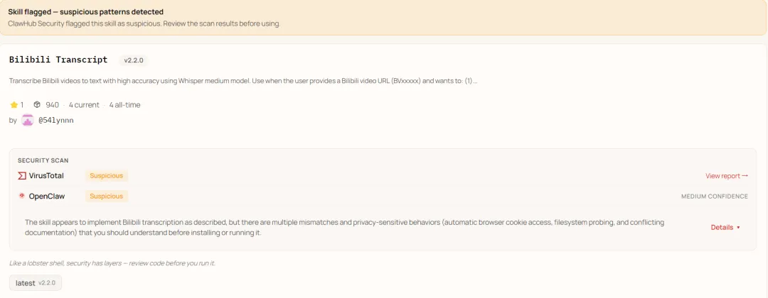 地址:https://clawhub.ai/54Lynnn/bilibili-transcript