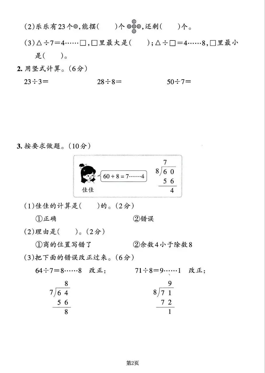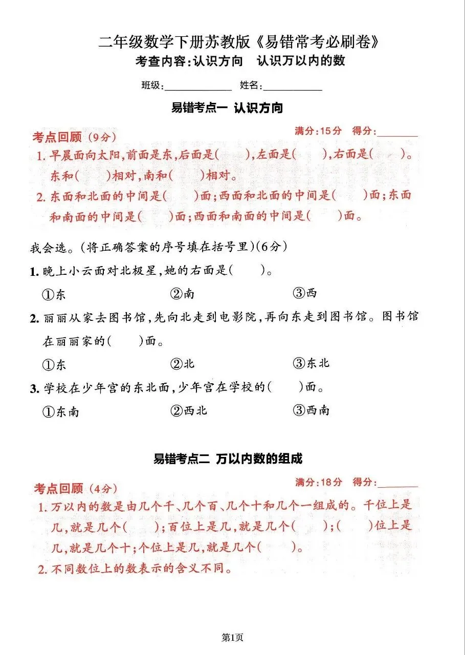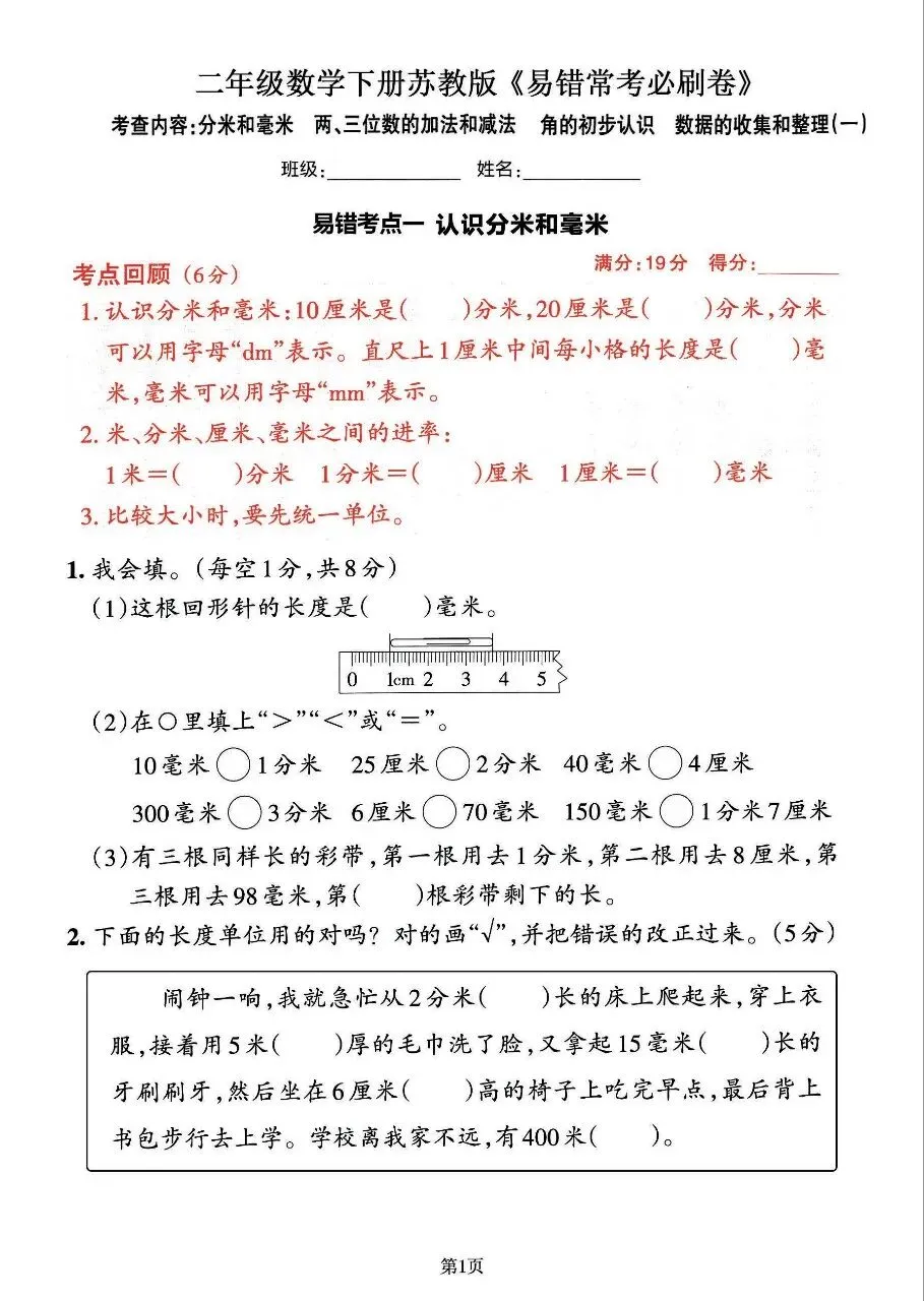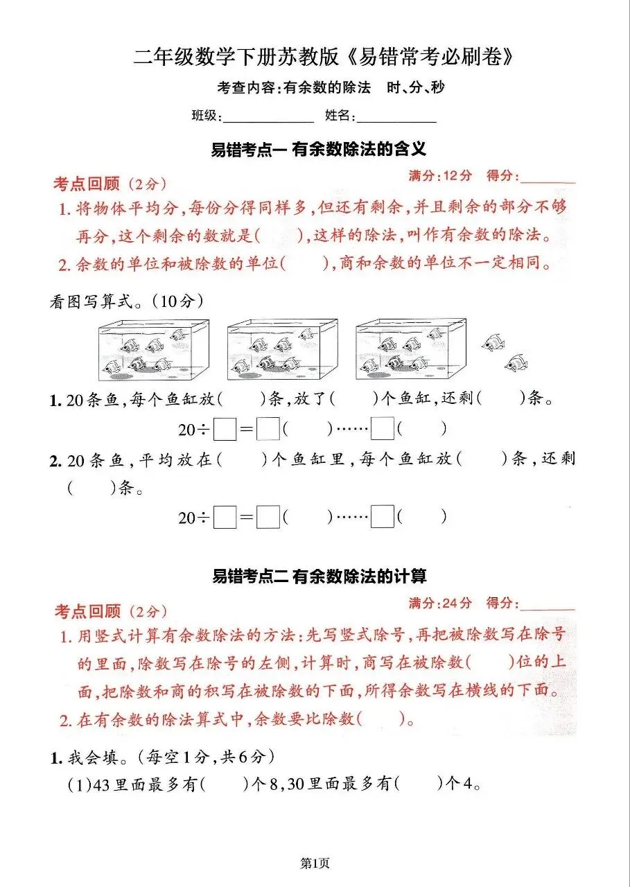 今日分享二年级下册数学苏教版易错常考题训练(完整电子版可打印)!高清电子版可直接打印,排版规整适配练习,不用费心整理,孩子每日一练夯实基础,家长辅导省心!
