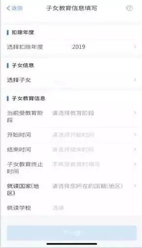 3.根据实际情况选择和录入子女教育信息,如当前受教育阶段、教育时间起和止等,完善后点击【下一步】;