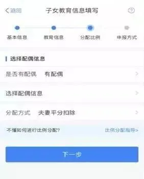 4.选择是否有配偶和分配方式,若之前未添加过配偶信息选择“有配偶”后可以在该页面先添加配偶信息,点击【下一步】;