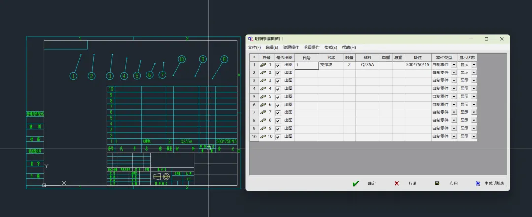 出图时最头疼的明细表统计,以往手动录入易漏填、错填,天河PCCAD能自动提取零件信息,一键生成规范明细表,支持批量修改、数据联动,修改图纸后明细表同步更新,彻底告别手动核对。
