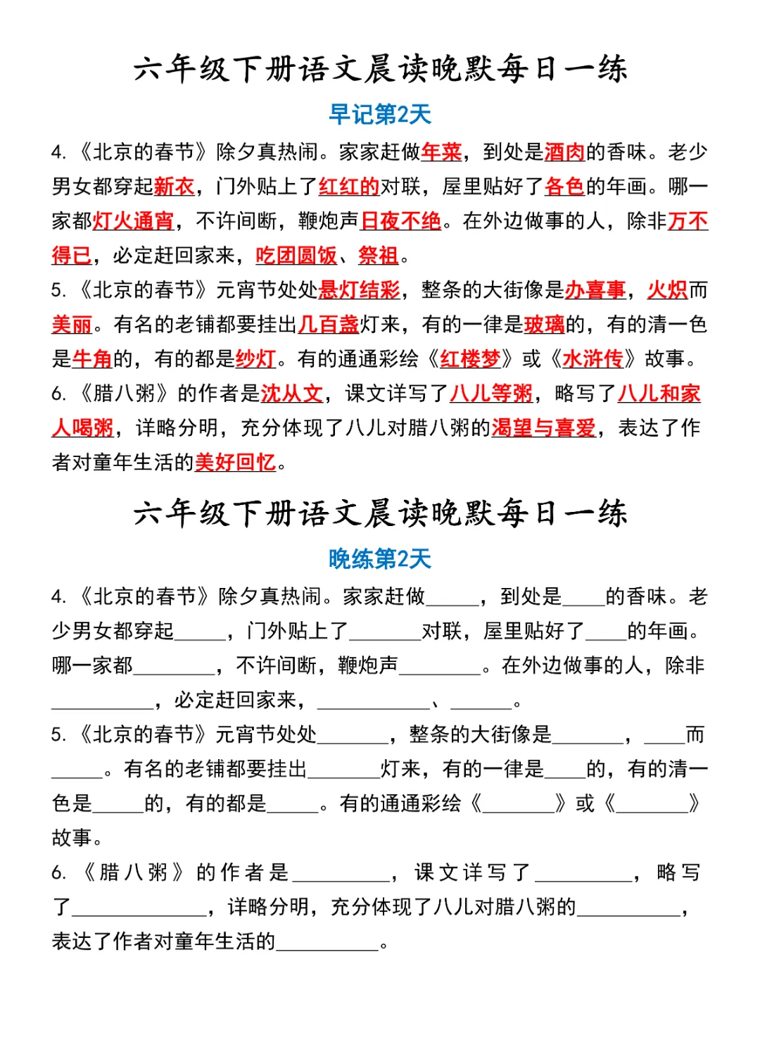 26春《六年级下语文晨读晚默》高清电子版可打印