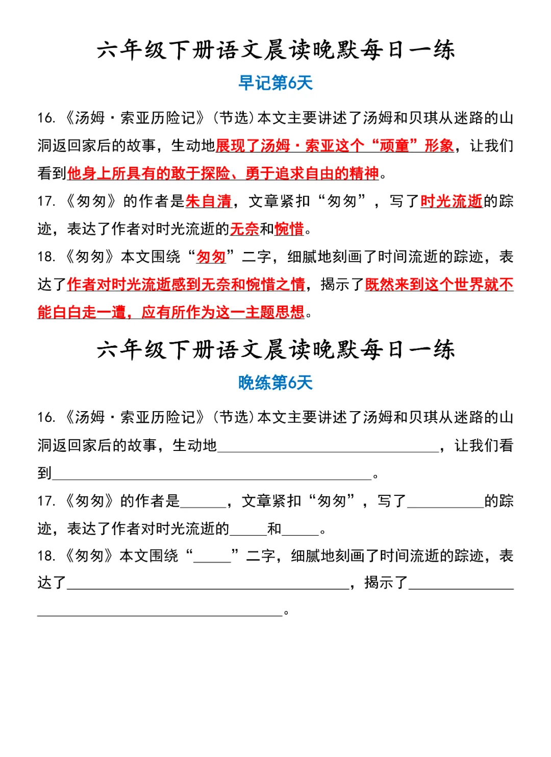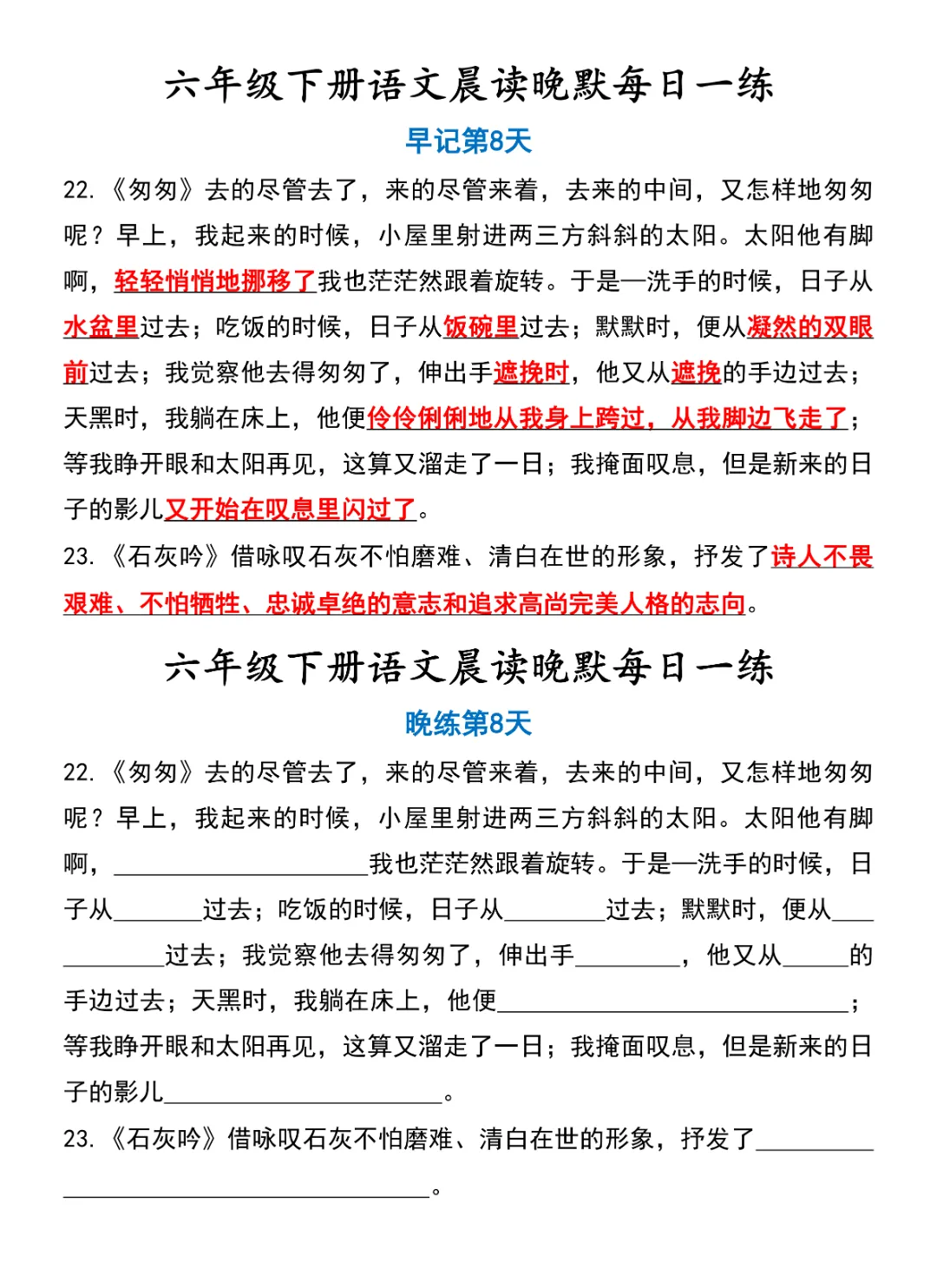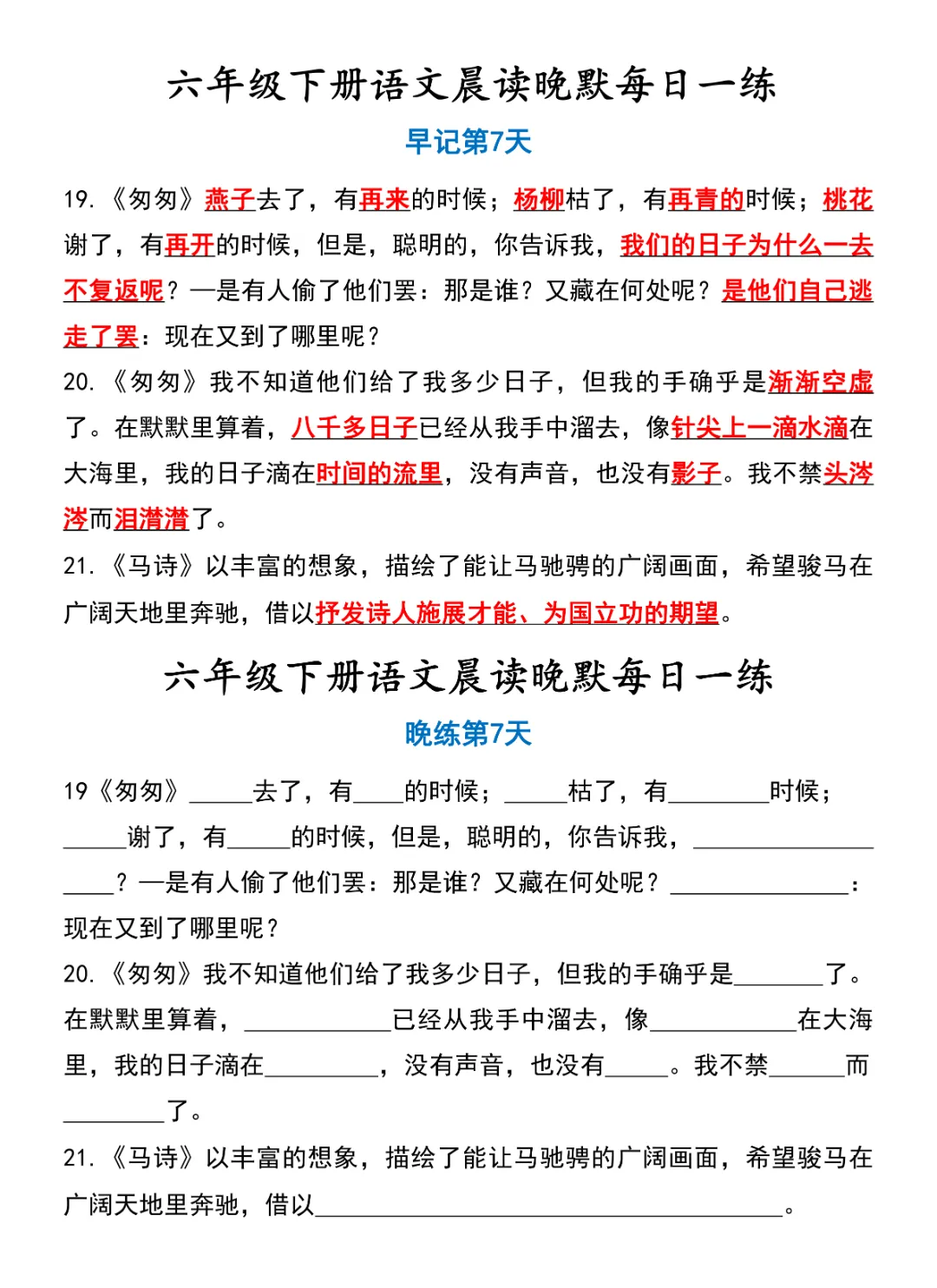 26春《六年级下语文晨读晚默》高清电子版可打印。需要的家长可以领取打印出来~