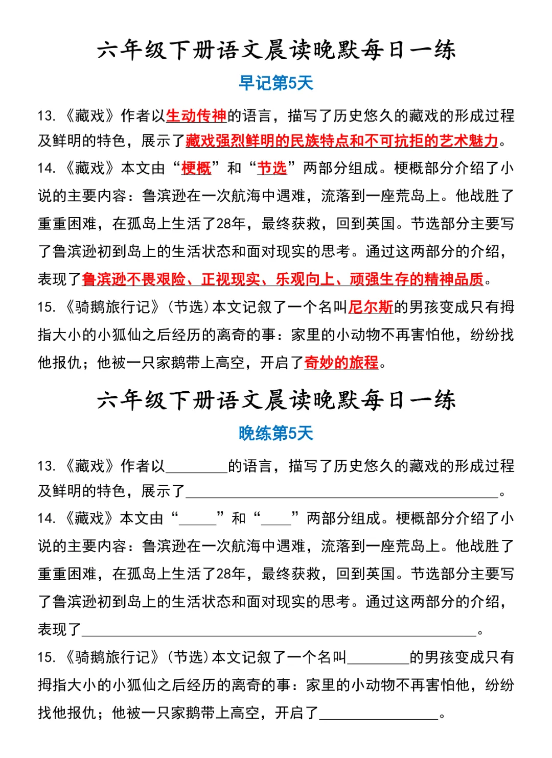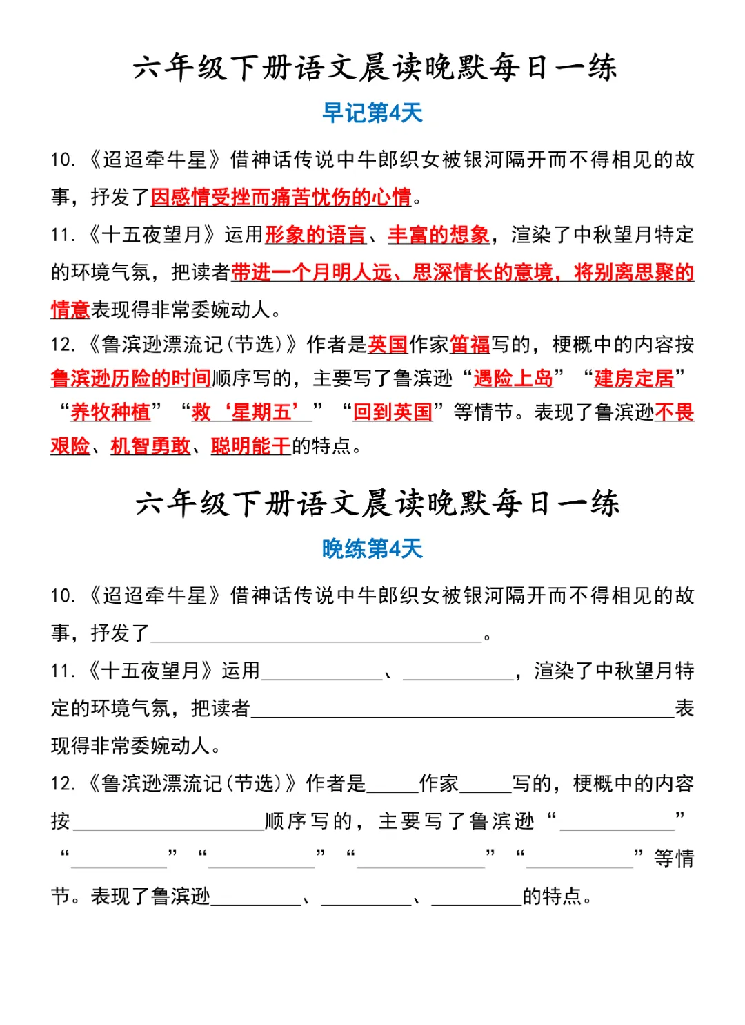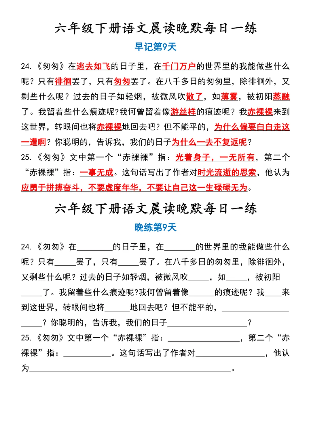 26春《六年级下语文晨读晚默》高清电子版可打印。需要的家长可以领取打印出来~