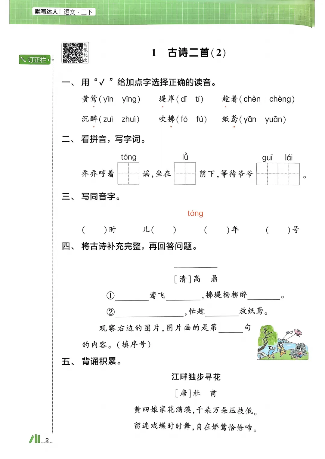 26春二年级下册语文《课时知识默写》电子版可打印