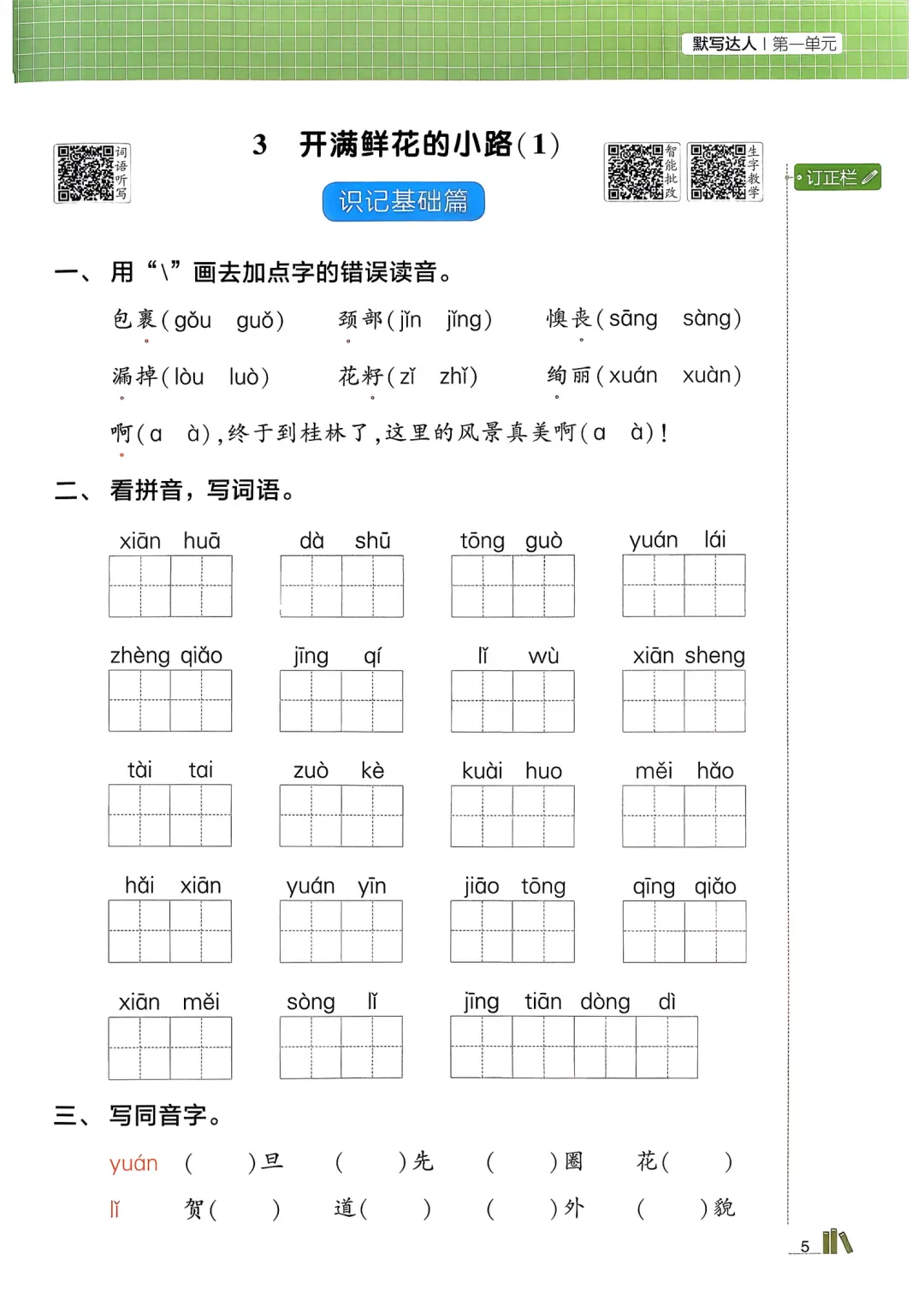 《二下语文课时知识默写》
